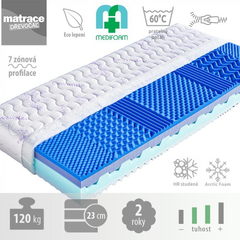 Pěna MediFoam - Tato vysoce gramážní pěna byla vytvořena speciální technologií, která se vyznačuje skvělými ortopedickými vlastnostmi. Má dokonalou prodyšnost, pružnost, je tvarově stálá a má dlouhou životnost. Zvýšená pórovitost je velmi dobrá k odvádění tepla z matrace, tato pěna tzv. dýchá. Matrace z pěny MediFoam zajišťují ideální uvolnění páteře, kloubů a svalů po dobu vašeho spánku. Jsou zdravotně testované a mají certifikát Textilního zkušebního ústavu, s. p. v Brně. Pěna MediFoam je garancí kvality.