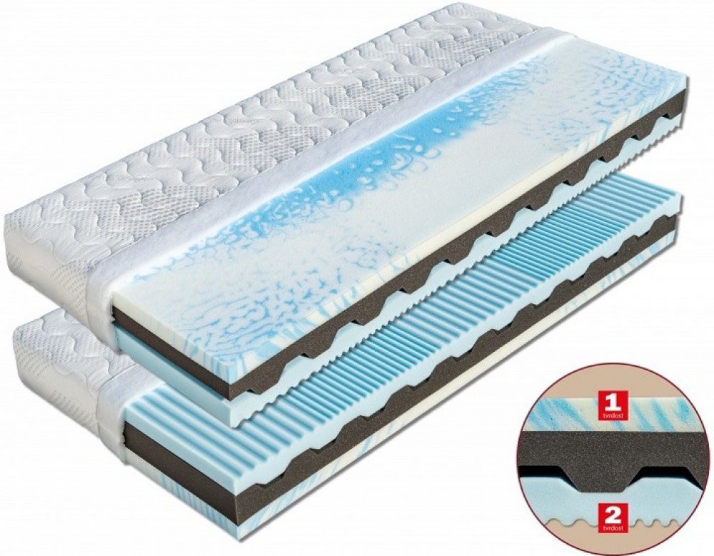 Matrace vyniká jedinečnými vlastnostmi velmi poddajné studené pěny ve výšce 5 cm s gramáží 45 kg/m³. Tato speciální tzv. nebeská pěna s příjemným povrchem je krásně měkká, velmi pohodlná a nevytváří protitlak vůči tělu. Na této nebeské pěně budete spát jako na obláčku. Střed jádra matrace je provzdušněn příčnými průduchy, které zaručují změkčení matrace v exponovaných místech. Je složen ze dvou pě...