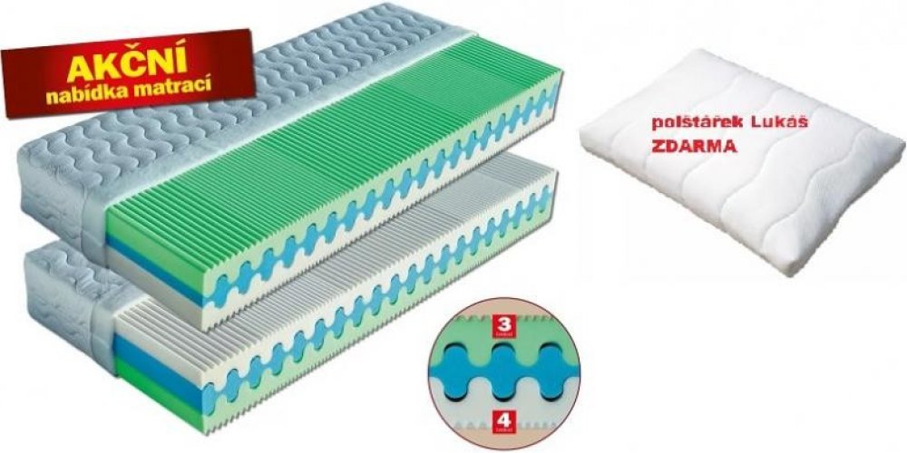 Matrace je dvojí tuhosti - 3 (tvrdá) a 4 (extra tvrdá). Samozřejmostí je 5 anatomických zón, které správně podepírají tělo.