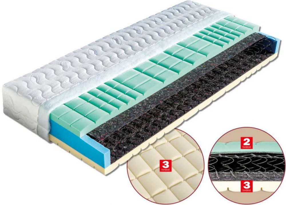 Pěna MediFoam - Tato vysoce gramážní pěna byla vytvořena speciální technologií, která se vyznačuje skvělými ortopedickými vlastnostmi. Má dokonalou prodyšnost, pružnost, je tvarově stálá a má dlouhou životnost. Zvýšená pórovitost je velmi dobrá k odvádění tepla z matrace, tato pěna tzv. dýchá. Matrace z pěny MediFoam zajišťují ideální uvolnění páteře, kloubů a svalů po dobu vašeho spánku. Jsou zdravotně testované a mají certifikát Textilního zkušebního ústavu, s. p. v Brně. Pěna MediFoam je garancí kvality.