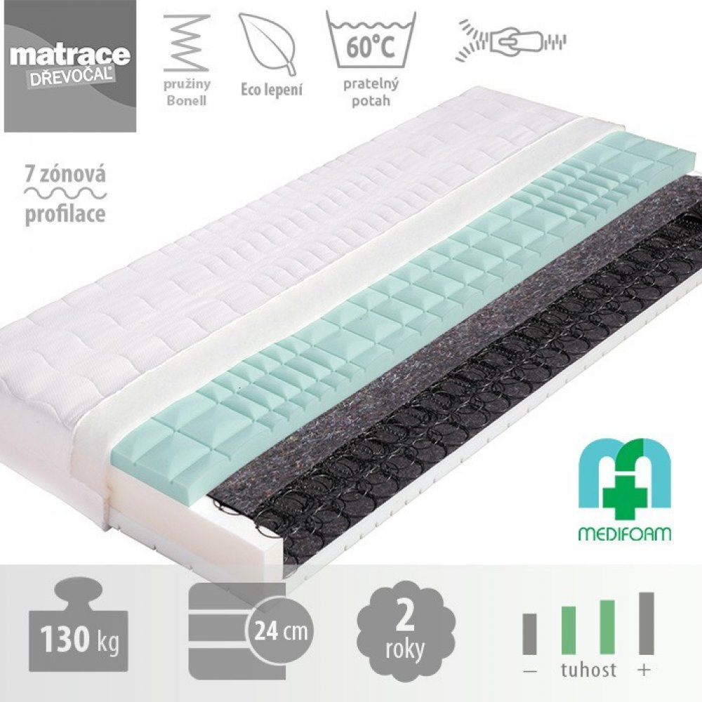 Dřevočal pružinové 7 zón 130 kg tuhost 2 - 3 středně měkká / středně tvrdá PUR pěna taštičkové