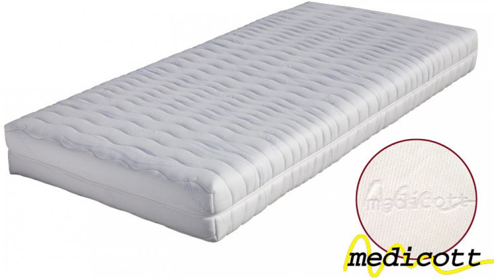 Podrobnosti o produktu MAT-52406 195 x 85 Značkový typ pleteného potahu, který svým speciálním složením zabraňuje tvorbě a usazování domácích roztočů a tvorbu plísní. Roztoči žijí v tmavém, vlhkém a málo odvětrávaném prostředí, a tomu přesně odpovídá vaše postel. Hlavní obživou pro roztoče jsou odpadávající buňky vaší kůže. Ty jsou rozkládány plísněmi a tak se stávají stravitelnými pro prachové roztoče. Plíseň samotná způsobuje alergie spojené s dýchacími symptomy. Medicott je účinná složka látky, která zabraňuje v bavlně nebo v látkách s bavlněným základem vzniku plísní a současně přežití prachových roztočů. Medicott má vynikající antibakteriální účinky, které jsou dosaženy bez přídavku chemických látek. Tajemství úspěšného fungování spočívá v odstranění nečistot z vláken přírodní bavlny, čímž se zamezí potencionálnímu domovu plísní. Potah má dlouhotrvající účinek při pravidelné údržbě. Potah je pratelný na 60°C. Pro pocit většího komfortu dodáváme tuto potahovou látku v prošití 300g/m. U matrací s výškou jádra minimálně 16 cm nabízíme možnost vložení 3D pásky po obvodu matrace. Potah s použitím 3D pásky zabezpečuje provzdušnění matrace a napomáhá cirkulaci vzduchu. Cena potahu s použitím 3D pásky: - do rozměru 200 x 90 cm se cena navýší o 508 Kč - do rozměru 200 x 180 cm se cena navýší o 1 016 Kč Informaci o požadavku 3D pásky prosím uveďte do poznámky k objednávce.Prosíme o uvedení výšky matrace od poznámky objednávky, děkujeme.