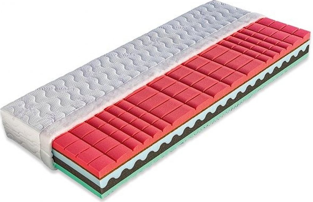 Unikátní ortopedická matrace Renata je vhodná také pro alergiky. Jádro matrace se skládá ze dvou odlišných pěn zasazených do sebe podélnou vlnou. Černá pěna (35 kg/m³) je příjemně elastická, modrá tvrdší (35 kg/m³) s vyšším odporem proti stlačení. Ložnou plochu matrace tvoří antibakteriální pěna (32 kg/m³), která má antidekubitní prořez. Pěna je velmi příjemná. Vrstva kokosového vlákna ve výšce 1,...