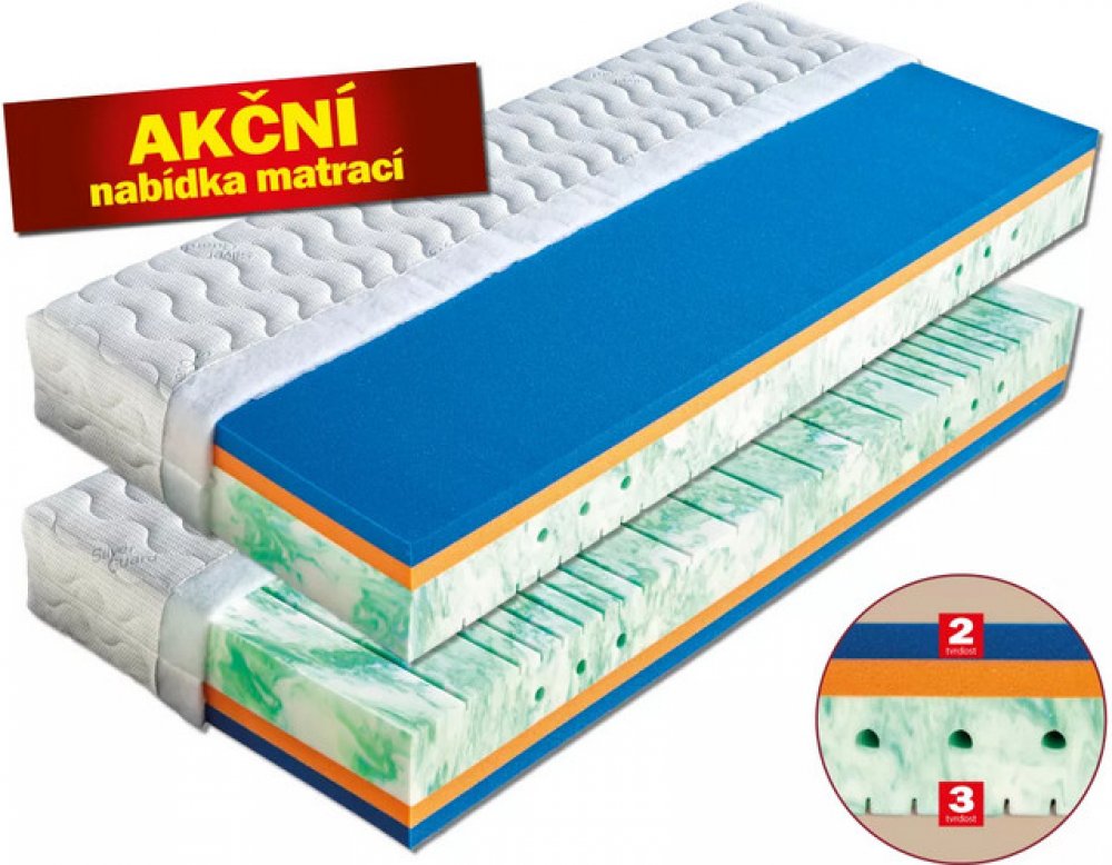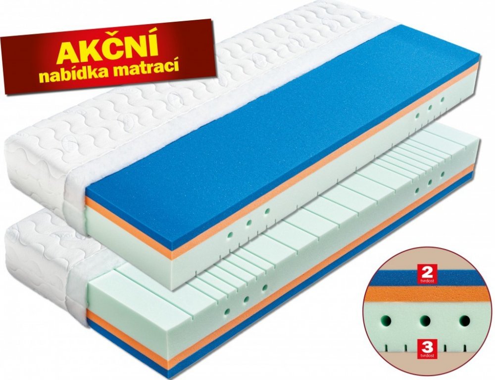 Podrobnosti o produktu MAT-88997 80 x 195 x 22 Komfortní matrace s volbou dvojí tvrdosti pro dokonalý odpočinek. Jádro z pěny MediFoam (32 kg/m a sup3;) je opatřeno otvory, vytváří tzv. ramenní kolébku, která ideálně kopíruje tělo při spánku na boku. Vrchní stranu matrace tvoří modrá viscoelastická pěna (50 kg/m a sup3;), která je charakteristická efektem pomalého vracení. Pod touto pěnou je vlože...
