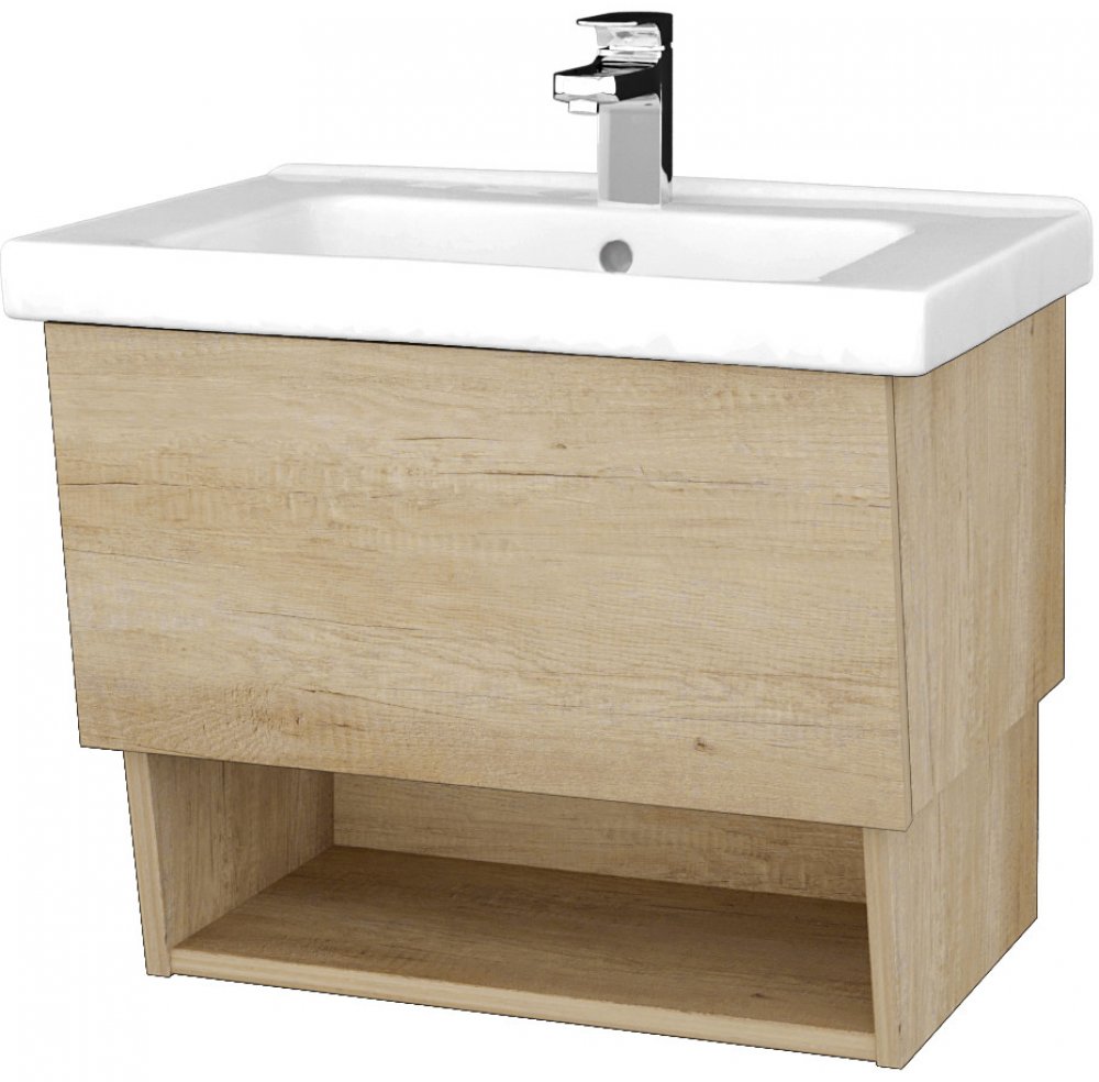 Závěsná umyvadlová skříňka 61x45,4x48 cm s 1 zásuvkou, otevřenou nikou a keramickým umyvadlem Harmonia 65