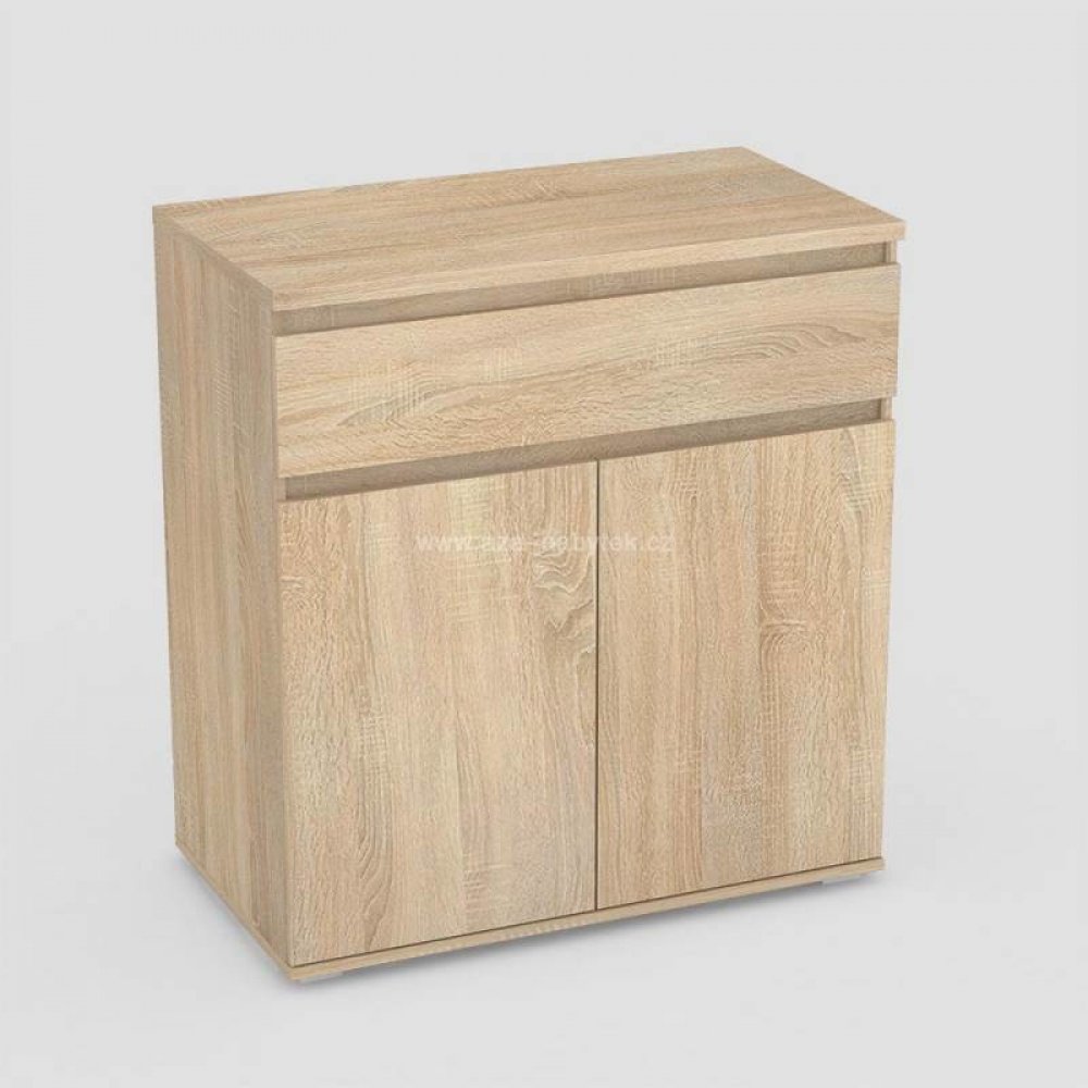 Komoda kombinovaná 1-zásuvka + 2xdvierka rozmer: š90 x v95,3 x h49 cm Materál: DTD laminovaná, vrchná doska má hrúbku 25 mm s ABS 2mm, čielka zásuviek a dvierka - ABS 1mm, ostatné hrany - ABS 0,5mm Dodávané v demonte.V ponuke vo všetkých dezénoch REA STANDARD. Vnútorné vybavenie komody je znázornené na perokresbe. Police na perokresbe sú zarátané v cene komody. Typovo dodávame celodezénovú komodu....