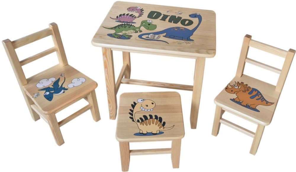 Drew-mix Dětský stůl ze dřeva se židličkami Dinosauři Vzor 40