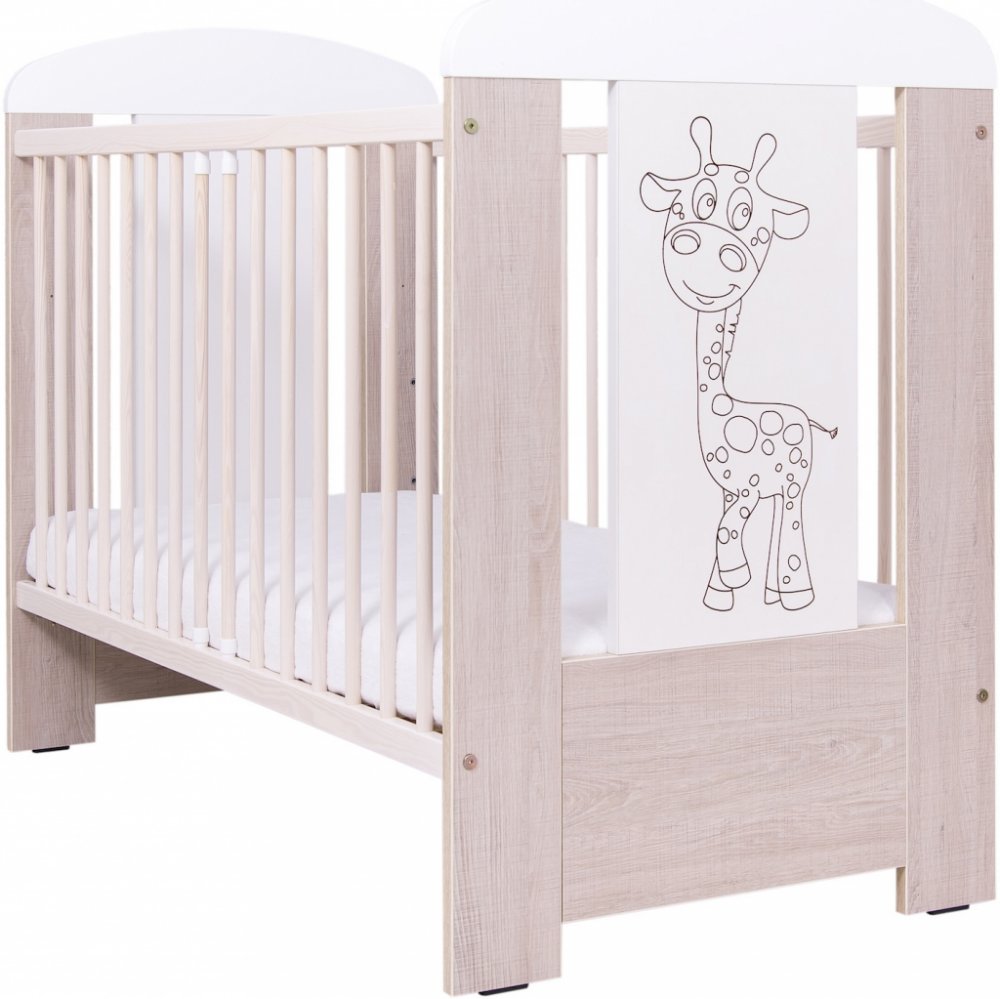 Materiál postýlka je vyrobena z borovicového dřeva a laminované dřevotřísky je pokryta ekologickým lakem s dětským atestem (bezpečné pro děti, nehrozí otrava) všechny materiály použité na postýlce (barvy, laky, obrázky) jsou pro děti bezpečné a atestované Design na čele postýlky je vyrytý obrázek žirafky struktura dřeva je jasně viditelná pouze u hnědých částí Bočnice lze ji stáhnout v případě potřeby všechny příčky jsou upevněny bez možnosti vyjmutí Rošt postýlky žebrovaný rošt možnost upevnění roštu do 3 pozic na straně čela je vyznačena maximální možná pozice matrace Správná instalace matrace Pokud je rošt upevněn na nejvyšší pozici, ujistěte se prosím, že matrace nepřesahuje nejvyšší možnou výšku, která je vyznačena na postýlce v podobě rysky (výtlaku) na straně čela postýlky. Dodržením této bezpečné výšky chráníte dítě před možným vypadnutím z postýlky a následným úrazem. Designový pokojíček V designu postýlky jde sladit celý pokojíček a vytvořit tak nádherné prostředí pro start Vašeho děťátka - V nabídce najdete šatní skříň, převalovací komodu i skříň s regálem.