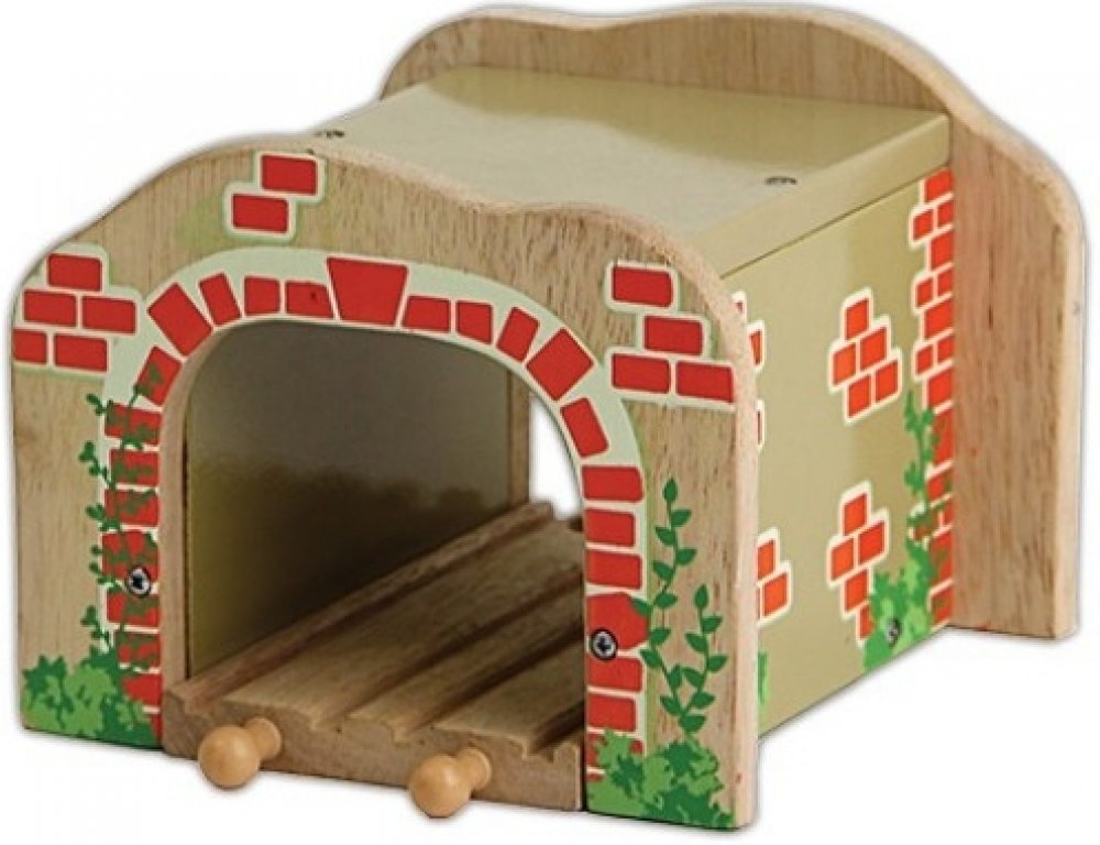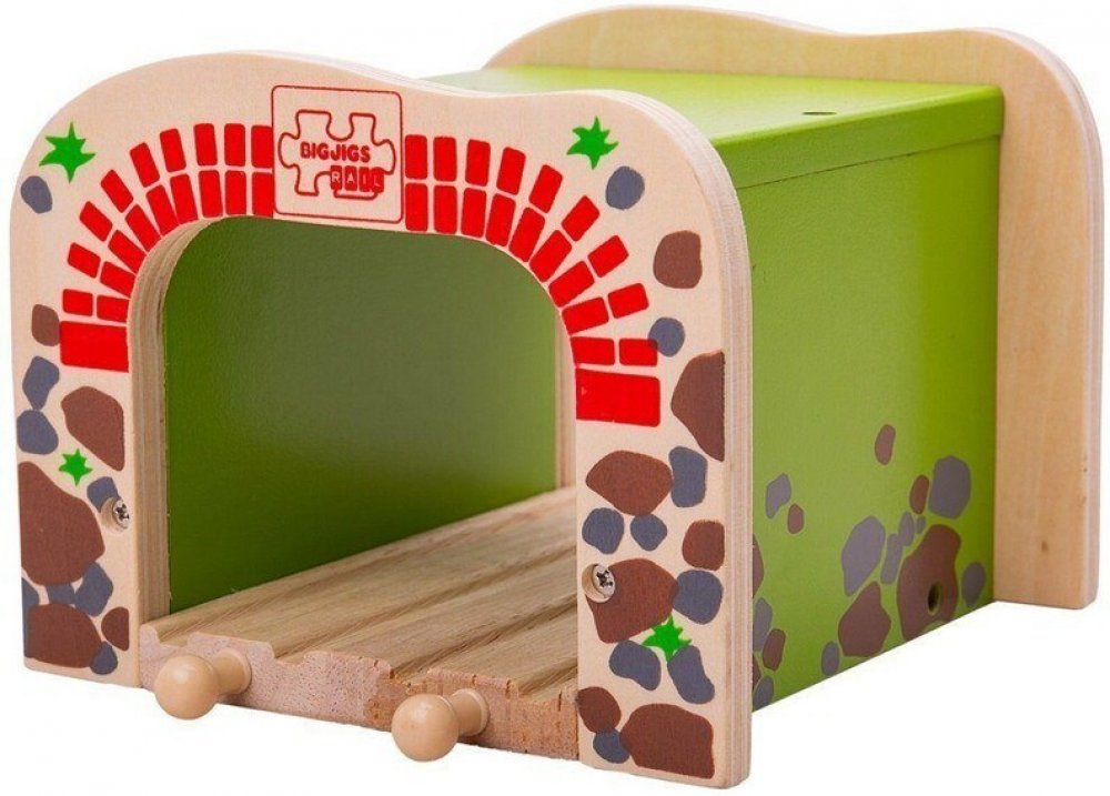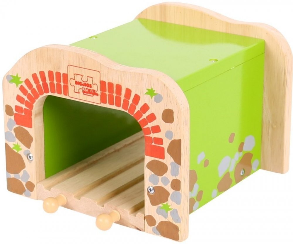 Dřevěný dvojitý železniční tunel z červených cihel s vysoce kvalitním povrchem je skvělým rozšířením každé vláčkodráhy. V tunely je spousta místa pro projíždění dvou vlaků, což umožňuje větší zábavu při hře!Součástí balení je vše dle obrázku. Vláčkodráhy a jejich příslušenství značky Bigjigs je možno kombinovat se všemi dalšími dřevěnými vláčkodráhami na trhu.Anglická značka Bigjigs byla založena roku 1985 a zpočátku se zabývala výrobou pouze dřevěných puzzlí. Majitelé vyráběli vše ručně s láskou v malém zahradním domku, své výrobky prodávali na trhu. Spokojení zákazníci výrobce motivovali k mnoha dalším nápadům a rozšíření nabídky o další dřevěné hračky. Přibylo zasílání poštou a prodej přes katalog. Spokojenost a věhlas značky rostla, takže následoval velkoobchodní prodej a pro udržení výrobních cen přesun a rozšíření výroby na východ. Nové značky kvalitních a nápaditých hraček si v Anglii všimly další velké prodejní firmy.Dnes Bigjigs hračky zůstávájí ve vlastnictví rodiny s obrovskými sklady v jiho-východní Anglii. Společnost i nadále dodává své hračky široké zákaznické základně ve Velké Británii a západní Evropě podpořená loajálním, oddaným a tvrdě pracujícím týmem zaměstnanců. Veškeré dřevěné hračky BigJigs jsou navržené v Anglii a vyrobené jak tamtéž, tak i ve východní Evropě a jihovýchodní Asii. Kvalita hraček značky BigJigs je testována a odpovídá všem podmínkám pro prodej v EU a USA.