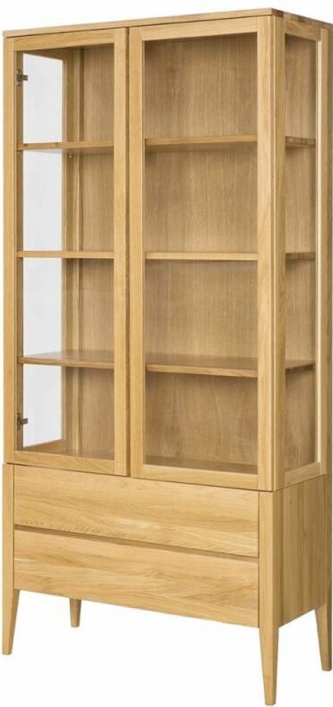 Kvalitní dřevěná skříň je vyrobena z dubového masivu s čistým a nadčasovým designem. Tento typ nabízí dvě úložné zásuvky (šuplíky), jednu skříňku s dvěma sprosklenými dveřmi, která má tři vnitřní police. U zákazníků je oblíbená jako knihovna nebo vitrína.