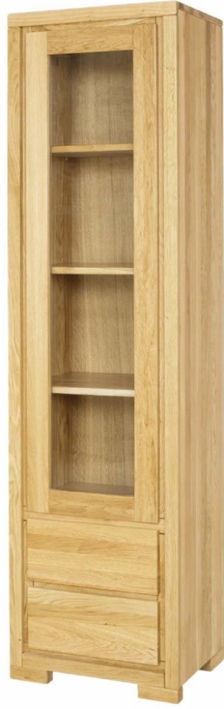 Dřevěná prosklená vitrína z masivního přírodního dubového dřeva .U dveří jsou použity kvalitní kovové panty s úhlem otevření 110°. K výrobě je použitý prvotřídní materiál a pro povrchovou úpravu je ekologický lak. Tyto komody se vyznačují pečlivým zpracováním a dlouhou životností. V základní ceně je komoda z dubového dřeva v přírodní barvě. Moření dle vzorníku je za příplatek 10% z ceny. Tento nábytek je moderní a luxusně propracovaný. Užíte si jeho luxusní vůni a propracované detaily. Do poznámky uveďte, z