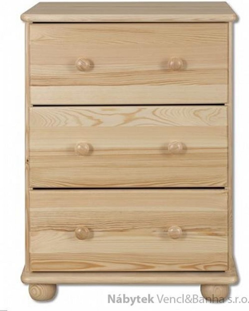 Tato dřevěná komoda KD107 z masivní borovice je elegantním a praktickým doplňkem pro každou domácnost. S třemi prostornými šuplíky, ozdobenými ratanovou vložkou, nabízí dostatek úložného prostoru a moderní vzhled. Stabilitu a estetiku komody podtrhují kulaté nožičky. Vnitřní část šuplíku je vyrobena z kvalitní kombinace dřeva, DTD a sololitové desky. Povrchová úprava je vodou ředitelný lak v bezba...