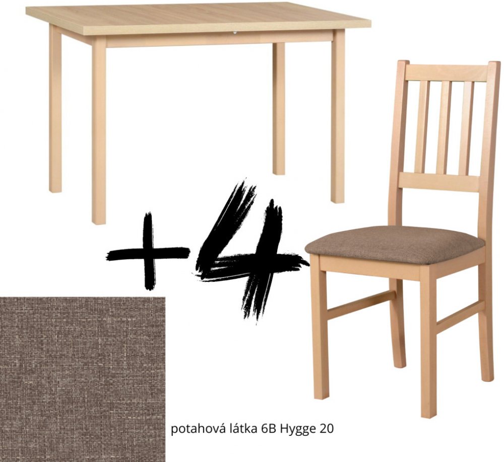 Jídelní set se skládá z jídelního stolu MAX 10 a 4 kusů jídelních židlí BOS 7.