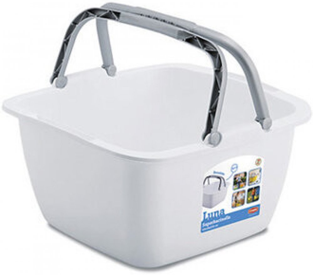 Čtvercové plastové umyvadlo s úchyty lze ideálně využít v široké domácnosti na přenos prádla nebo nejrůznějších druhů věcí. K dispozici je ve třech barevných variantách (bílá, limetková, tykysová) bez možnosti výběru.