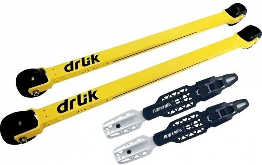 Drlik Classic Alu 1.0 jsou hliníkové kolečkové lyže, které vynikají především svou odolností, stabilitou. Jedná se tak o model lyží vhodný zejména pro začínající lyžaře. Začínající lyžaři ocení zejména velmi dobrou stabilitu a ovladatelnost. Výhodou je také odolnost lyží vůči hrubému zacházení. Přední kolečko je opatřeno antireverzním mechanizmem umožňujícím odraz. Parametry Rozměry kolečka: 75 x 44 mm (středně rychlá gumová kolečka) Váha: 2 154 g/pár Délka : 700 mm Váhový limit: 115 kg Součástí balení jsou i blatníky Vázání Rottefella Rollerski je namontováno na velikost boty 38-40 EU Vázání Rottefella Rollerski Specáilně navržené pro jízdu na kolečkových lyžích. Vázání má širší bočnice a patu, což podstatně zvyšuje stabilitu. Vázání je vyrobeno z velice pevného plastu, tak aby odolávalo hrubému použití, kterému je právě na kolečkových lyžích vystaveno. Parametry: Váha 279 g (pár). Manuální odklápění tvrdý flexor Pro boty NNN.