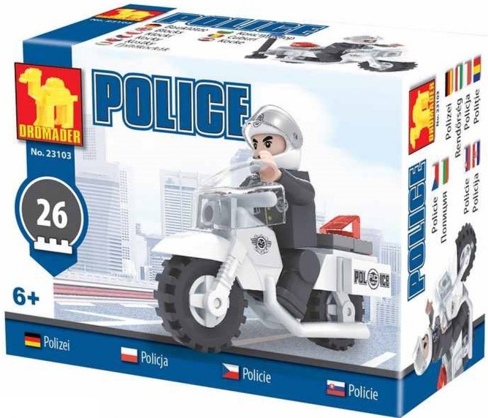 Série stavebnic Dromader jsou velmi bohaté a rozmanité s pestrými barvami. Krásná stavebnice policejního auta je pro všechny malé i větší stavitele. Vhodné od 6 let.