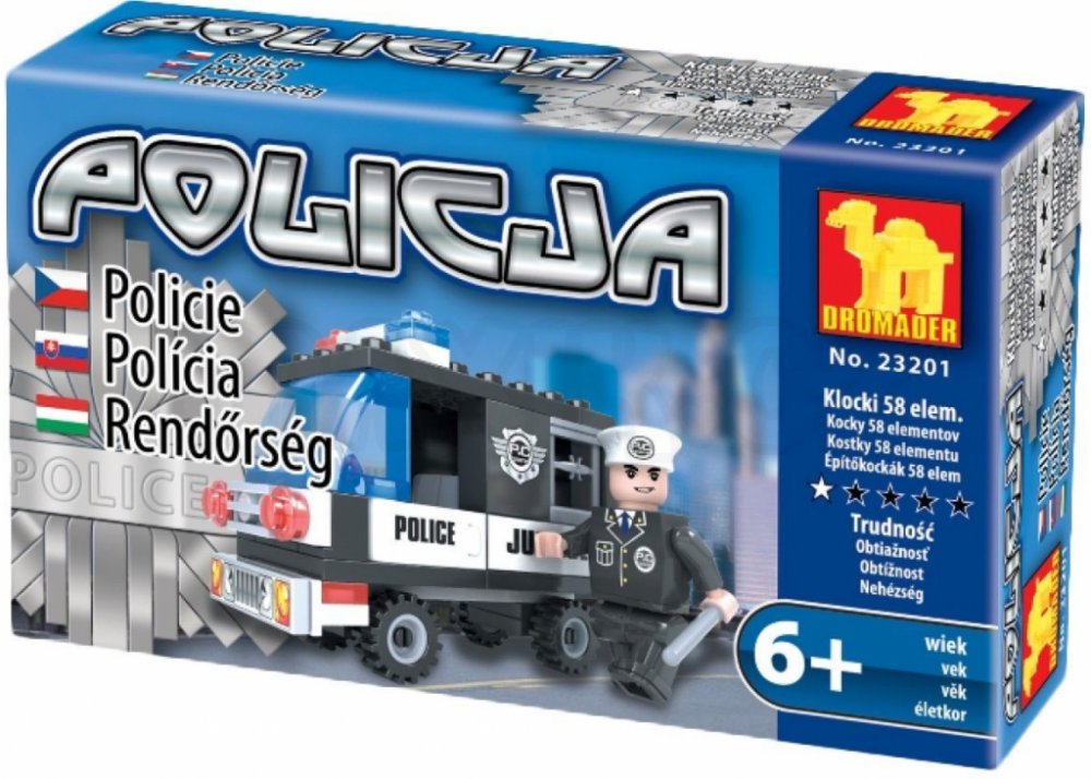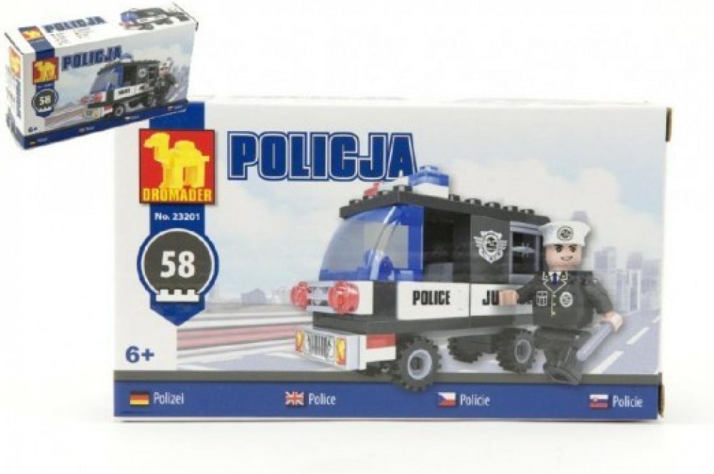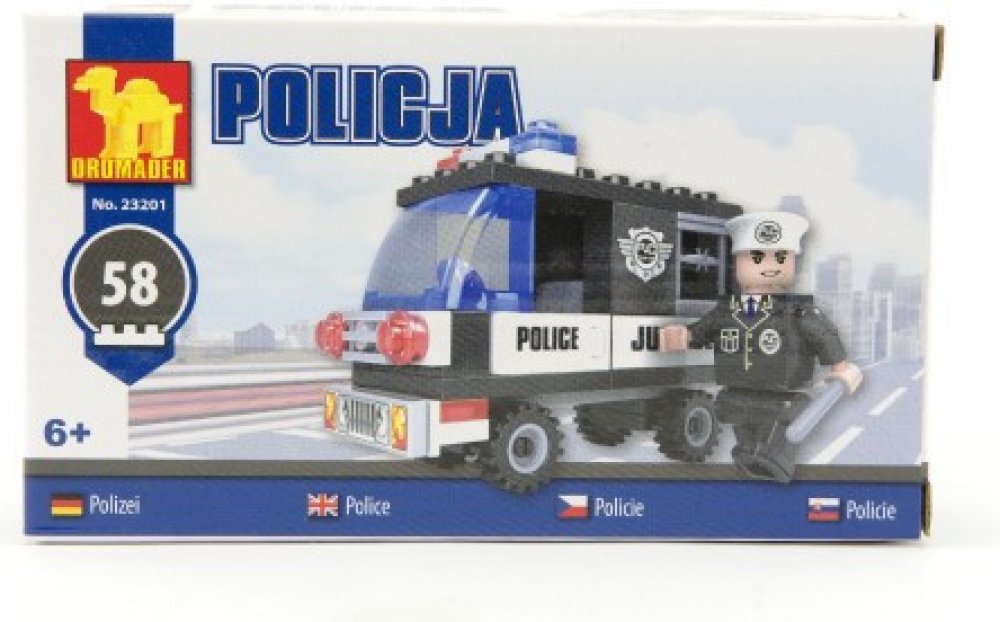 Stavebnice Dromader Policie Auto 23201 58ks v krabičce 17x10x4,5cm Popis produktu Dromader 23201 Policejní dodávka 58 dílků. Ze stavebnice pro děti Dromader sestavíte policejní dodávku. Stavebnice je ideální hračkou, která rozvíjí tvořivé a kombinační schopnosti dítěte. Stavebnice Ausini rozvíjí logické myšlení, učí děti trpělivosti a vytrvalosti. Obsahuje 58 dílků. Je plně kompatibilní se stavebn...