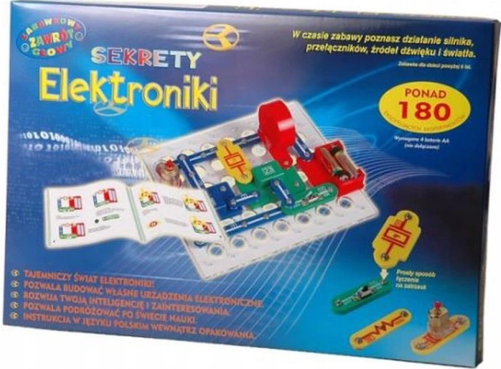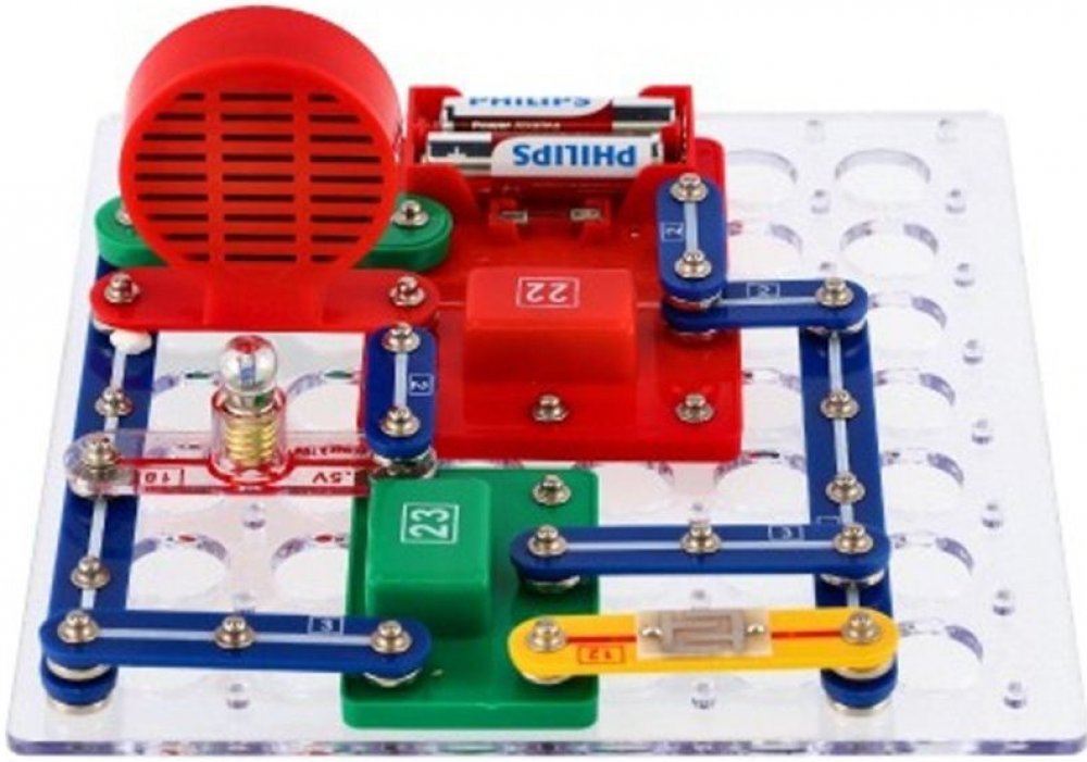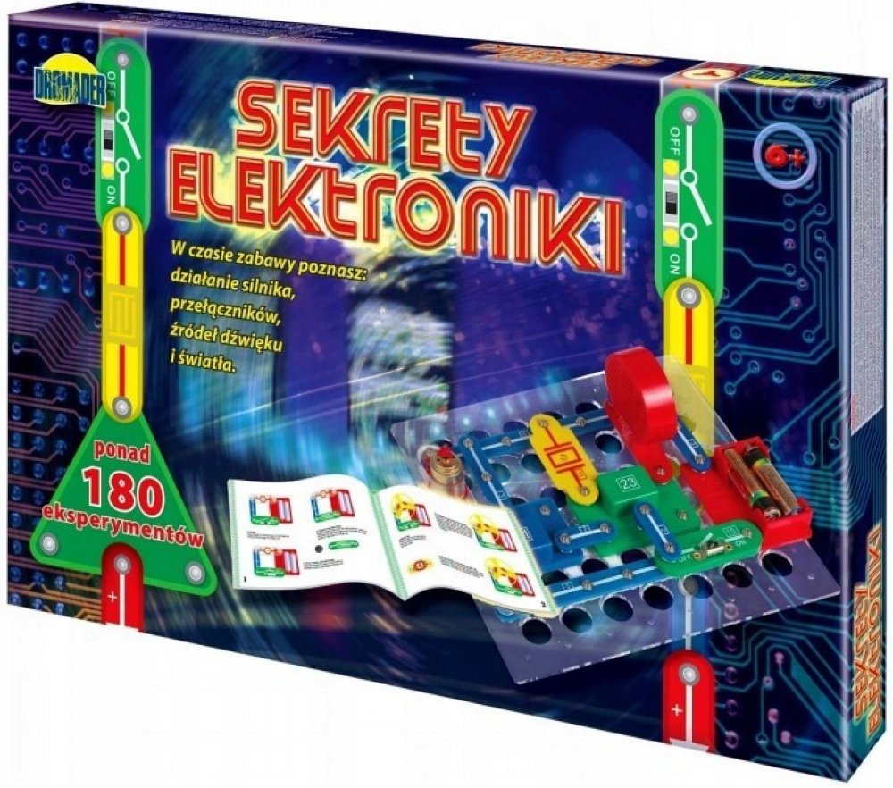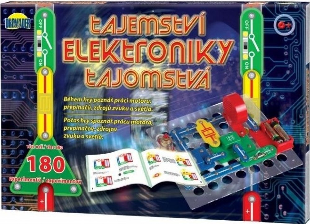 Podrobný návod v češtině nabízí schémata 180 projektů . Vstupte do tajemného světa elektroniky a elektrotechniky. Díky jednoduchému principu sestavování přehlédnému rozložení děti snadno pochopí princip elektrických obvodů. Vinikající i jako školní pomůcka nebo nástroj pro vlastní domácí projekty.