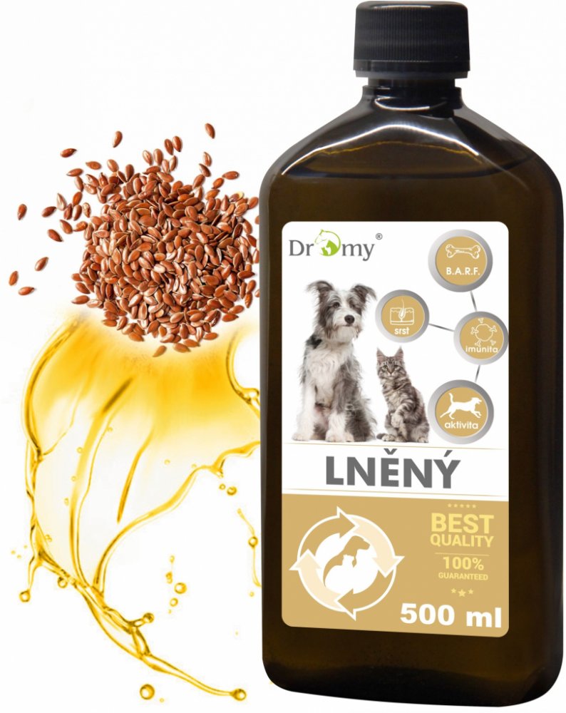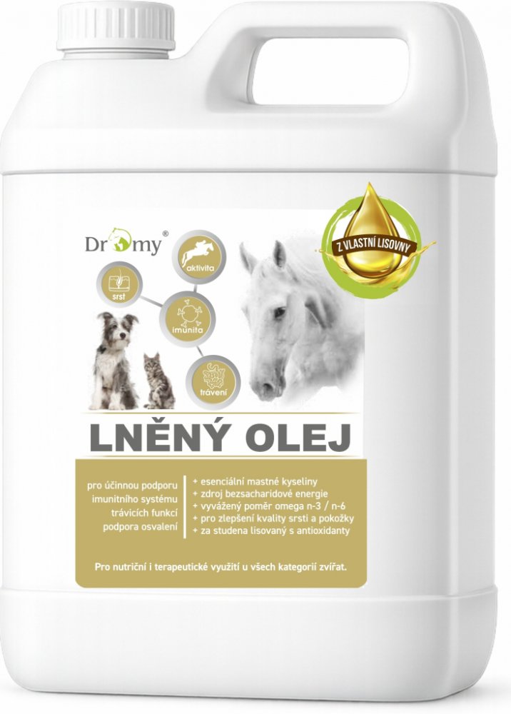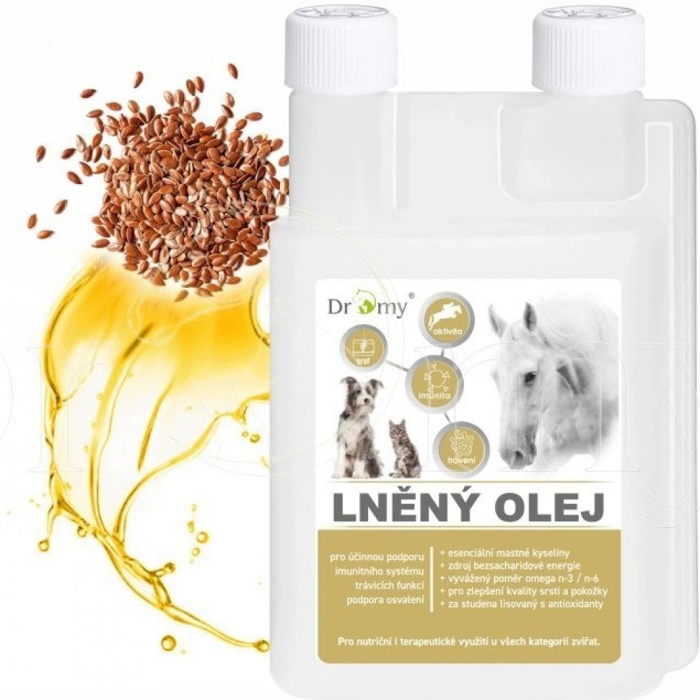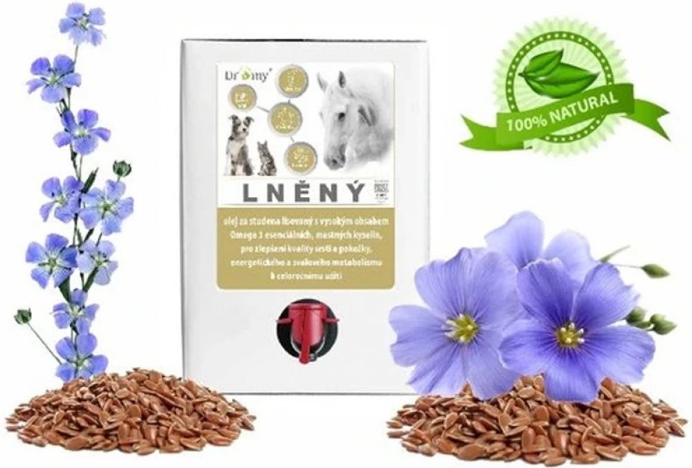Lněný olej pro všechny kategorie koní, psů a koček je vyráběn lisováním za studena ze semen Linum Usitatissimum Linaceae.