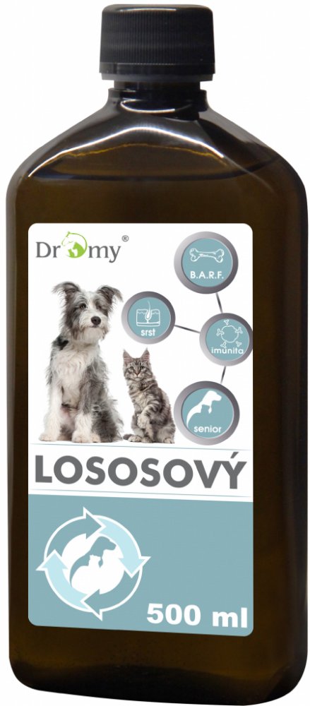 Doplňkové krmivo pro psy a kočky - složení: surový olej z Norského lososa.