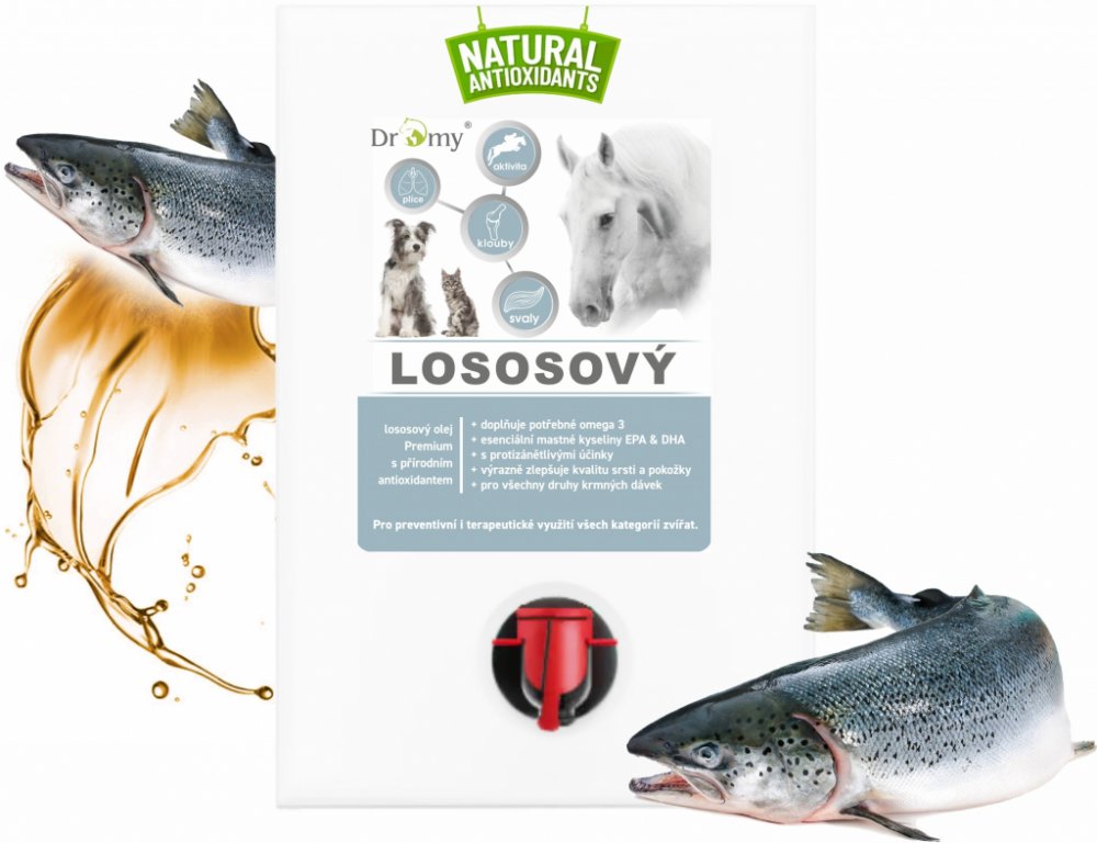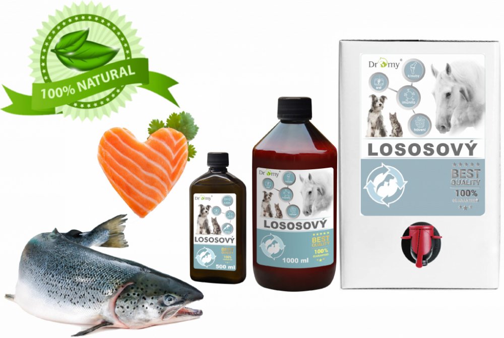Lososový olej je určený k celoročnímu použití. Jeho červeno-oranžové zbarvení je způsobeno velice silným přírodním antioxidantem Astaxanthinem.