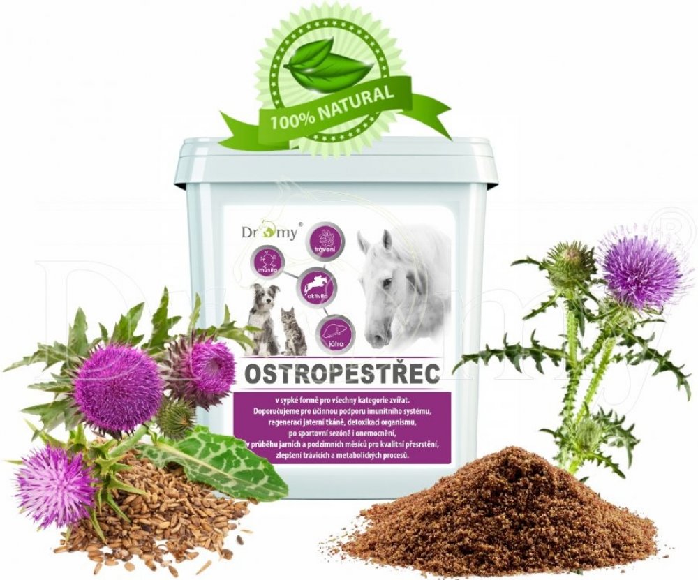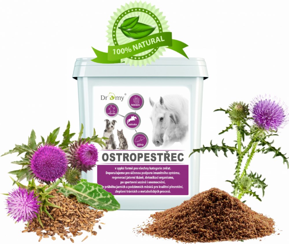 Ostropestřec mariánský a obsažené fytogenní látky, známé jako silymarin komplex, jsou čistě přírodním hepatoprotektivem, podporující přirozenou regeneraci organismu. Tyto látky prokázaly ochranné a protizánětlivé účinky na jaterní buňky, nervový, kardiovaskulární systém, svalový aparát s vysokou antioxidační kapacitou. Játra jsou jedním z největších orgánů koní, tvoří až 1 % jejich celkové tělesné hmotnosti. I když jsou játra jediným orgánem u savců, která se při poškození dokážou sama regenerovat, jsou situace, kdy játra pro svou regeneraci vyžadují nutriční podporu.