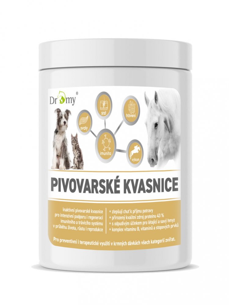 Dromy® sprejově sušené pivovarské kvasnice rodu Saccharomyces cerevisiae s krásnou chlebovou vůní, jsou doplňkovým krmivem pro všechny kategorie koní, psů a koček poskytující komplex biologicky aktivních látek. Díky širokému spektru složení mají komplexní účinek na imunitní, trávicí, respirační a kardiovaskulární systém zvířete.