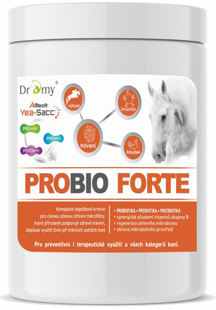 ProBio FORTE je skvělou prevencí trávicích poruch, které mohou nastat během jarní pastvy. Tato kombinace stabilizuje střevní mikroflóru, posiluje integritu sliznic trávicího traktu, reguluje pH a podporuje optimální trávení. Zlepšuje