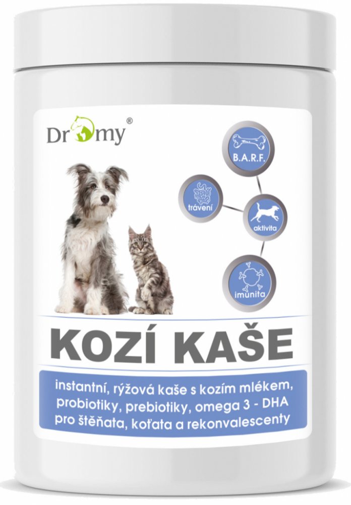 Rýžovo-mléčná kaše s kozím mlékem a prebiotikem, je vhodná pro rostoucí štěňata, jako pokračovací výživa při přechodu na pevnou stravu.