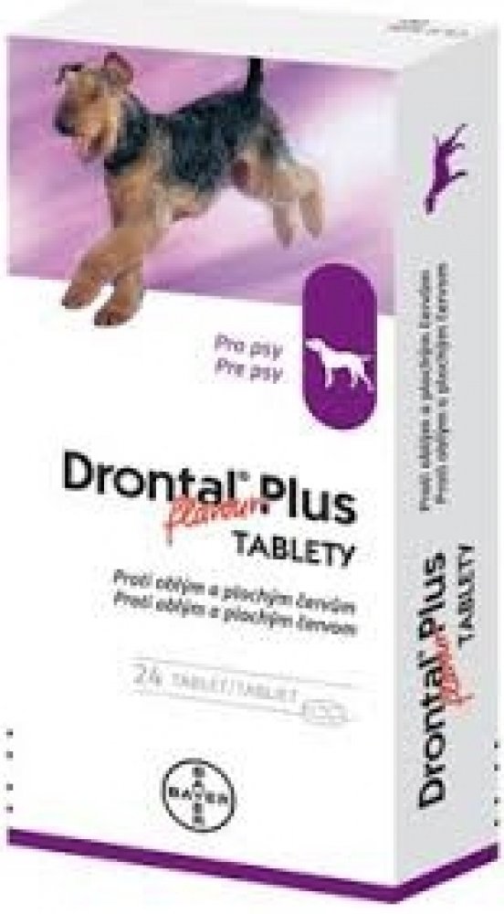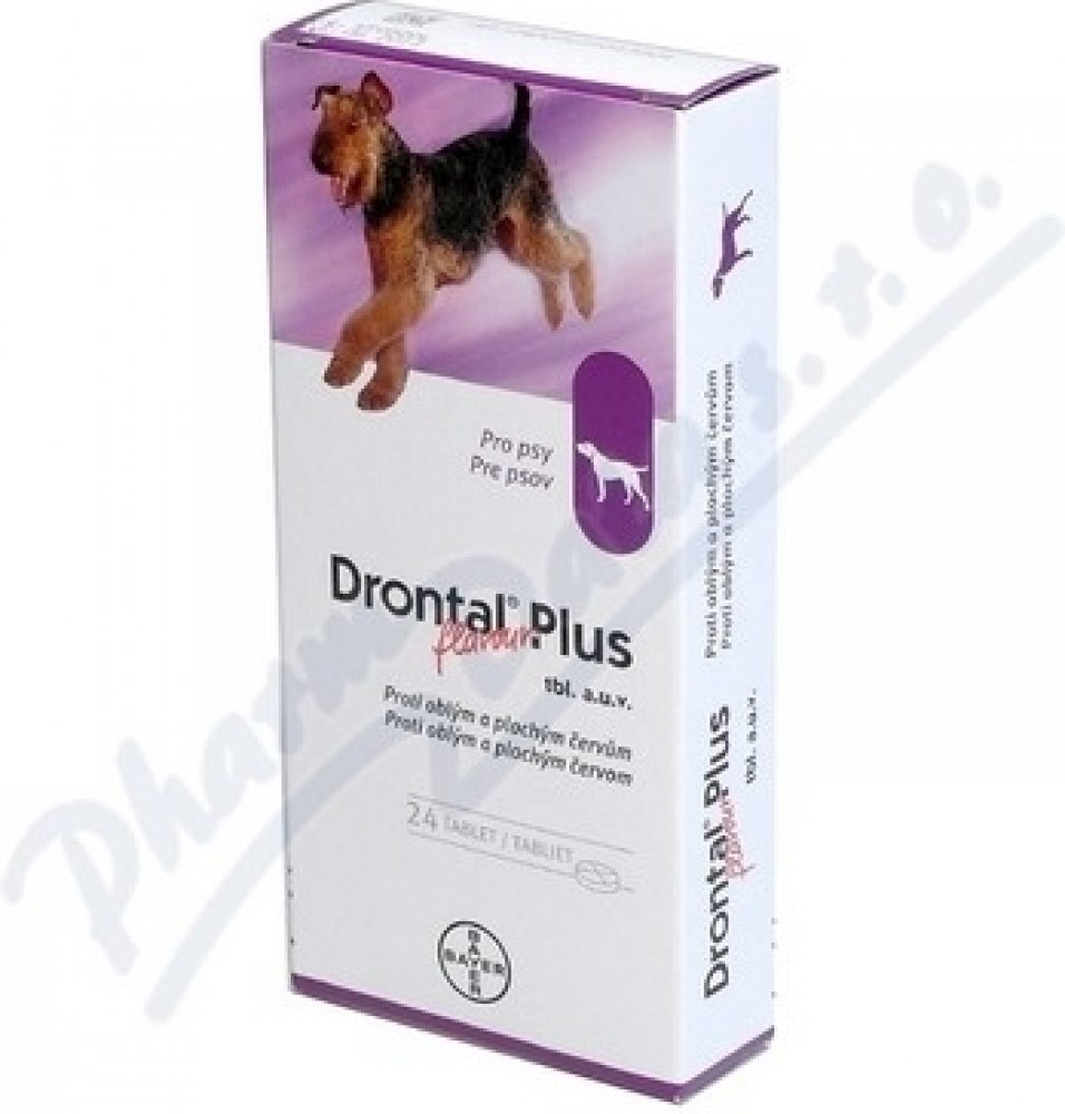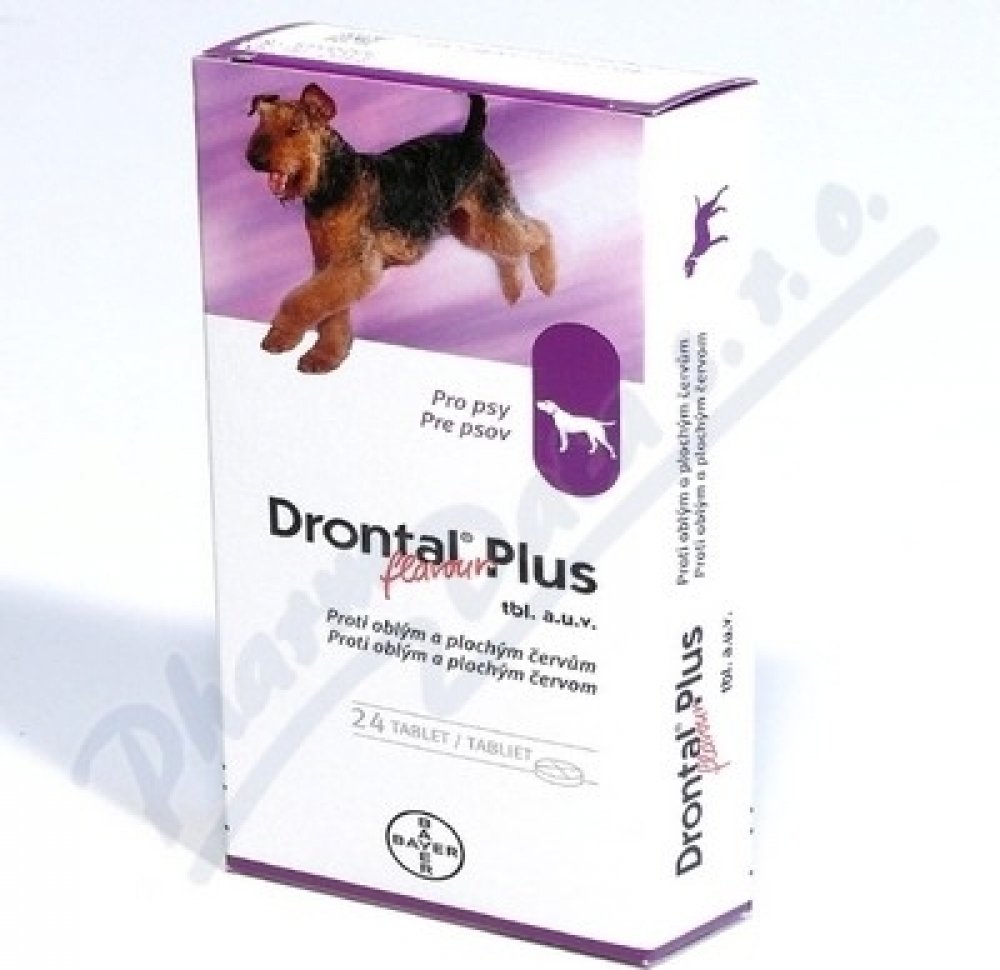 Přípravek Drontal plus je proti nematodózám a cestodozám psů (Toxocara canis, Toxoscaris leonina, Uncinaria stenocephala, Ancylostoma caninum,