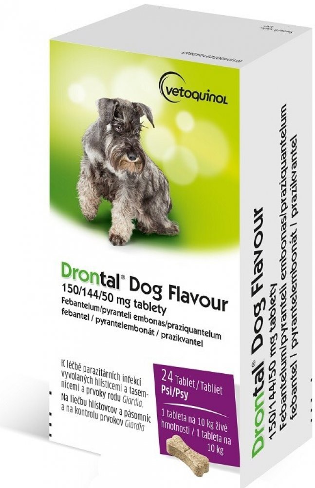 Drontal je určen kodčervení psů po invazi škrkavek a tasemnic, tj.oblých a plochýchčervů.