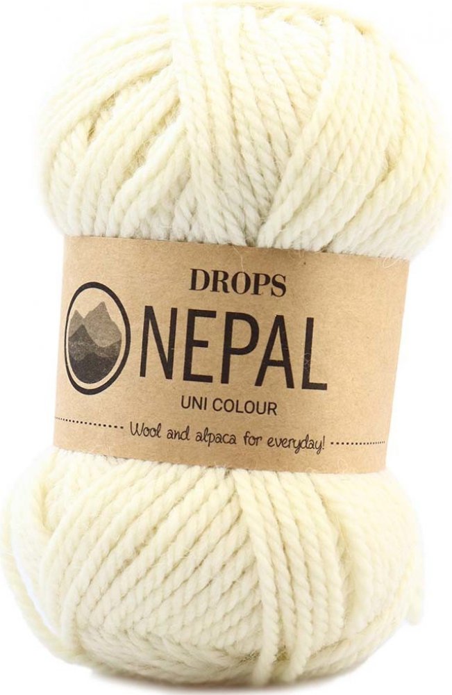 Drops Nepal je silnější kvalitní příze složená z 35 % alpaky a 65 % ovčí vlny. Oba druhy vláken neprochází žádnou chemickou úpravou, vlna je pouze vymývána a následně prochází běžným procesem barvení. Přirozené vlastnosti vláken zůstávají tedy v maximální míře zachovány, stejně tak i jejich tvarová kvalita a struktura. Příze Nepal je skána ze 3 vláken, je příjemná na pletení i háčkování a je rovněž vhodná k plstění. Výsledný úplet má lehce rustikální charakter. Doporučujeme na teplé vesty, svetry, ponča, plédy či hřejivé návleky. Barevnice obsahuje mix i jednobarevné odstíny. Mix varianty vznikají spojením dvou či více barevných vláken již během mykání, spřádány jsou pak jako jedno vlákno s typickým vícebarevným "míchaným" efektem.