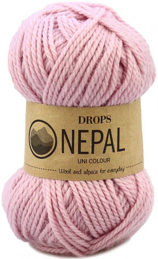 Drops Nepal je silnější kvalitní příze složená z 35 % alpaky a 65 % ovčí vlny. Oba druhy vláken neprochází žádnou chemickou úpravou, vlna je pouze vymývána a následně prochází běžným procesem barvení. Přirozené vlastnosti vláken zůstávají tedy v maximální míře zachovány, stejně tak i jejich tvarová kvalita a struktura. Příze Nepal je skána ze 3 vláken, je příjemná na pletení i háčkování a je rovněž vhodná k plstění. Výsledný úplet má lehce rustikální charakter. Doporučujeme na teplé vesty, svetry, ponča, plédy či hřejivé návleky. Barevnice obsahuje mix i jednobarevné odstíny. Mix varianty vznikají spojením dvou či více barevných vláken již během mykání, spřádány jsou pak jako jedno vlákno s typickým vícebarevným "míchaným" efektem.