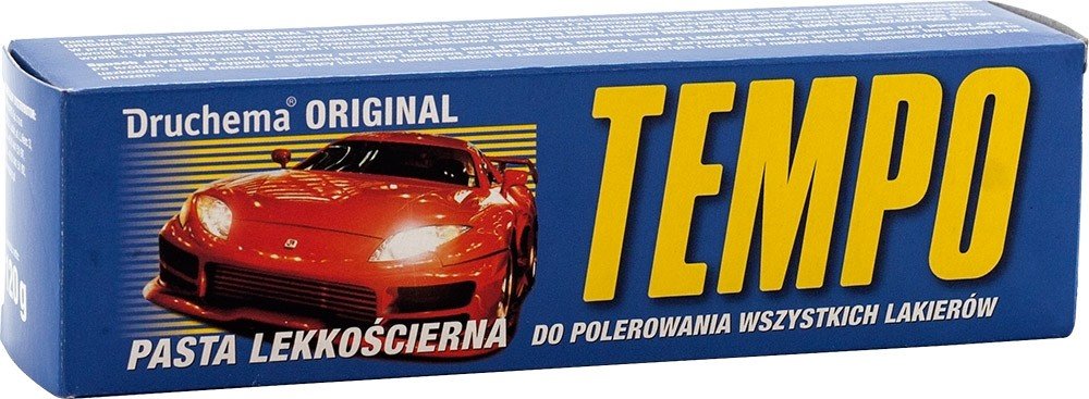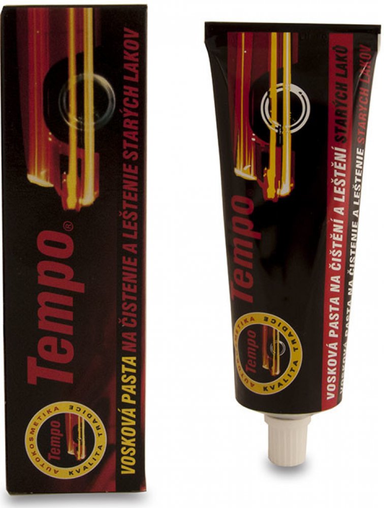 - Rozsah použití: Tempo Pasta obsahuje abraziva a tvrdé vosky. Pasta dokonale čistí, leští a konzervuje karoserie automobilů. Vosková pasta odstraňuje z povrchu karoserie mikrovrstvičku zvětralého laku a další nečistoty organického i anorganického původu (asfalt, zbytky hmyzu, olejové skvrny). Výrazně oživuje lesk i původní barvu karoserie. Je vhodná i pro čištění a oživení lesku chromu. Je určena pro všechny druhy autolaků, zvláště vhodná je pro intenzivní péči o znečištěný nebo starší lak. Má konzervační účinky. Pasta chrání karoserii vozu vysoce trvanlivým a vodovzdorným voskovým filmem.