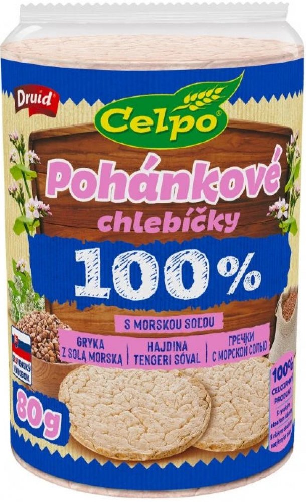 Celozrnné extra jemné chlebíčky 100% pohankové s mořskou solí s vysokým obsahem vlákniny a nízkým obsahem nasycených tuků.