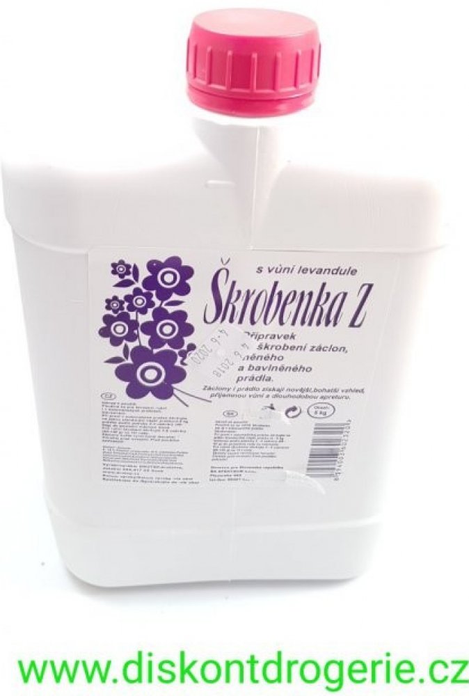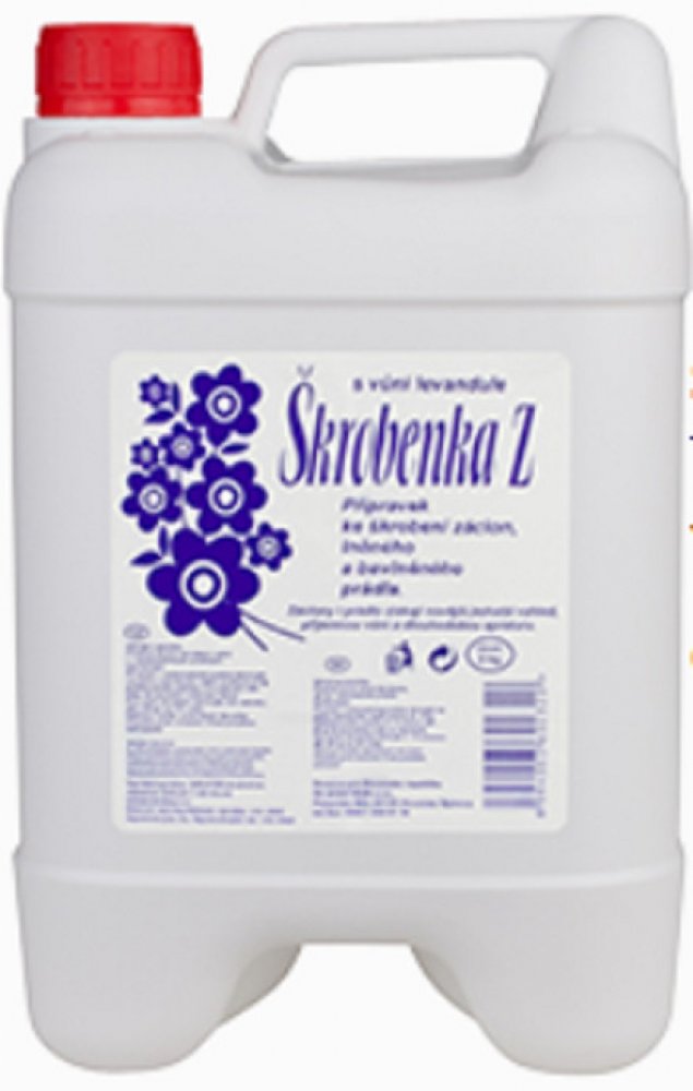 Škrobenka Z je syntetický přípravek ke škrobení záclon, lněného a bavlněného prádla. Záclony i prádlo získají novější, bohatší vzhled, příjemnou vůni a dlouhodobou apreturu. Používá se pro škrobení ruční i v automatických pračkách. Návod k použití: při praní v automatické pračce dávkujte na jednu standardní náplň pračky (4-5 kg prádla) podle potřeby 2-4 uzávěry (40-80g) do poslední máchací lázně. ...