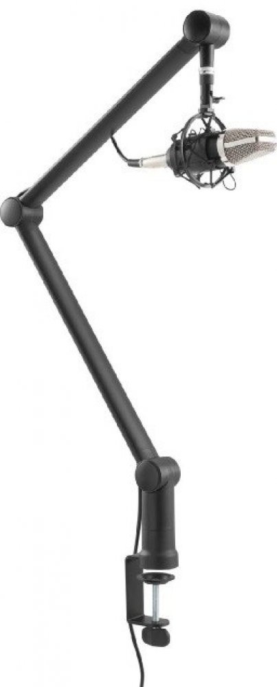 Mikrofonové rameno / držák je vhodný pro většinu studiových a počítačových mikrofonů, které lze namontovat na standardní 3/8" nebo 5/8" závit. Je tvořen odolnou hliníkovou konstrukcí a vybaven vnitřními pružinami a praktickým vedením kabelů. Stane se skvělým pomocníkem v živém vysílání, při klasickém nahrávání hlasu nebo hraní her. Rameno lze upnout na pracovní plochu nebo trvale připevnit na místo.