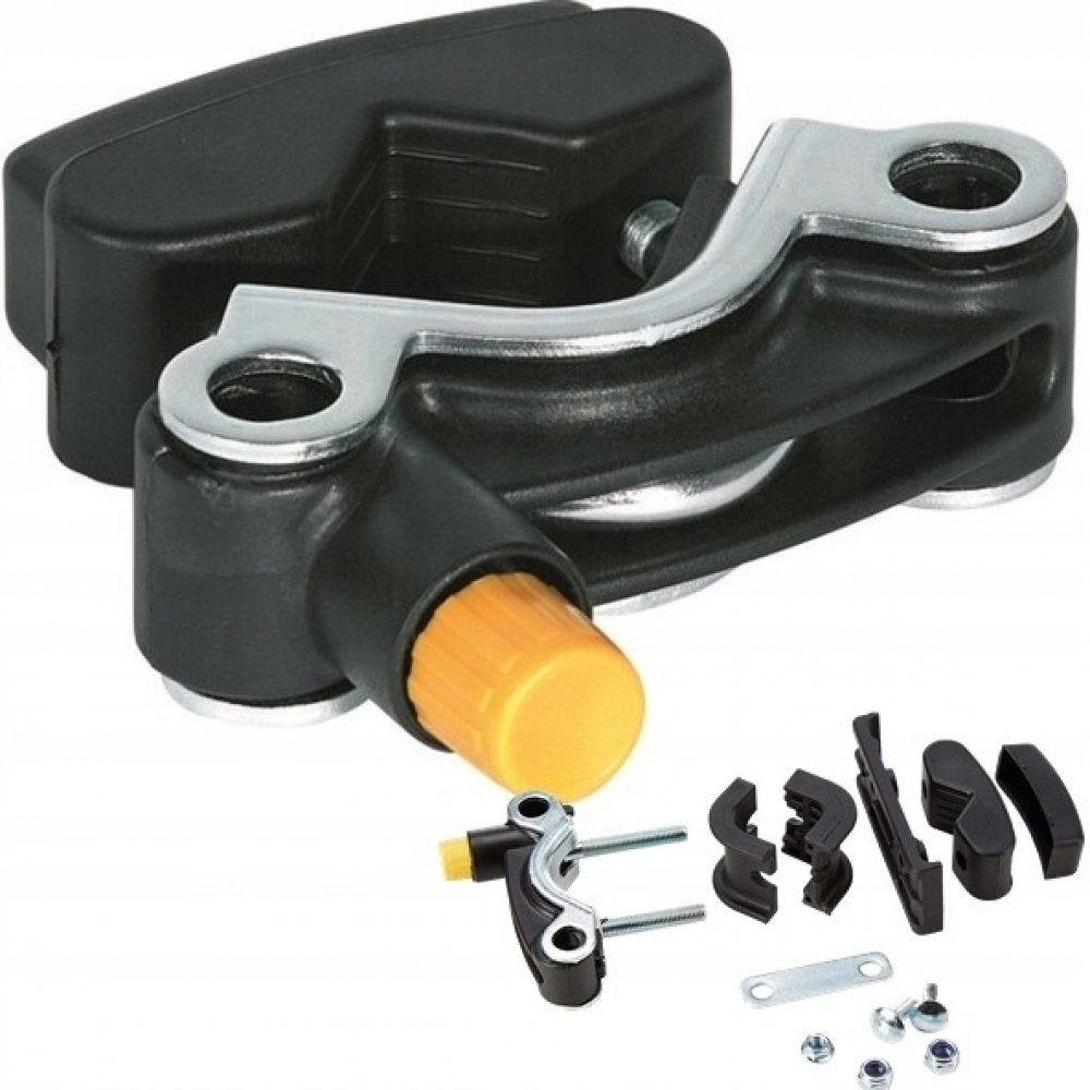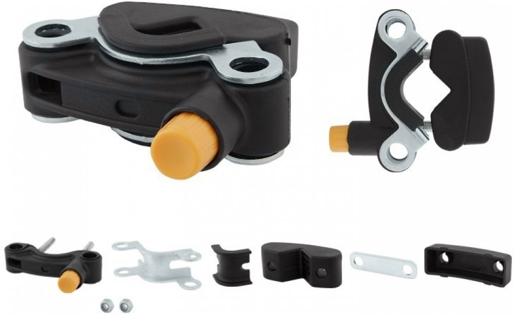 Upínací systém k dětskám sedačkám na jízdní kolo pro přední upínání. Handelfix se doporučuje pro průměr rámu 21 - 34 mm. Systém má dvě vložky, které lze použít buď pro průměr 21 - 26 mm nebo 25 - 34 mm.