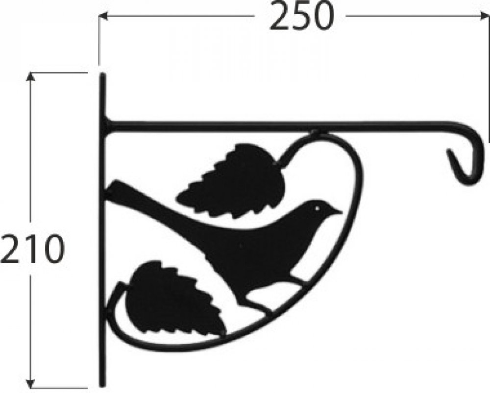 Dekorativní držák na závěsný květináč PTÁČEK. Rozměry: 250x210mm. Materiál: kov, povrchová úprava práškové lakování