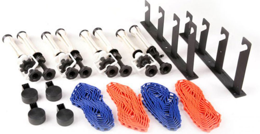 Držáky pro uchycení 4 rolí foto-pozadí na zeď nebo strop +4 páry rozpínacích trnů pro papírové/hliníkové role pozadí s řetízky a závažím. Plastový řetěz se dá jednoduše zkracovat podle potřeby. Délka řetězu 365cm.Balení obsahuje:1x sada dvou držáků4x pár rozpínacích trnů4x závaží na řetěz4x řetěz (plastový)