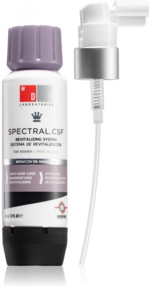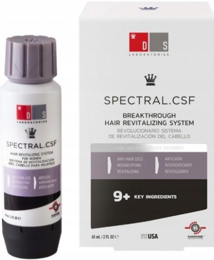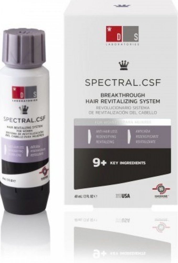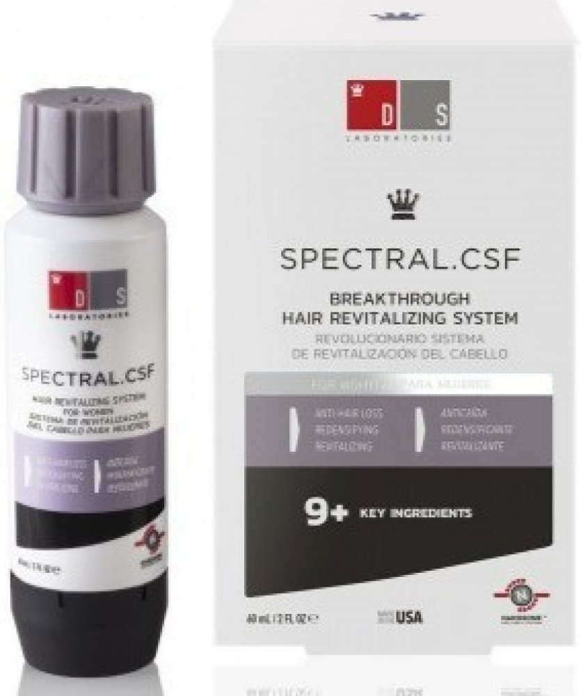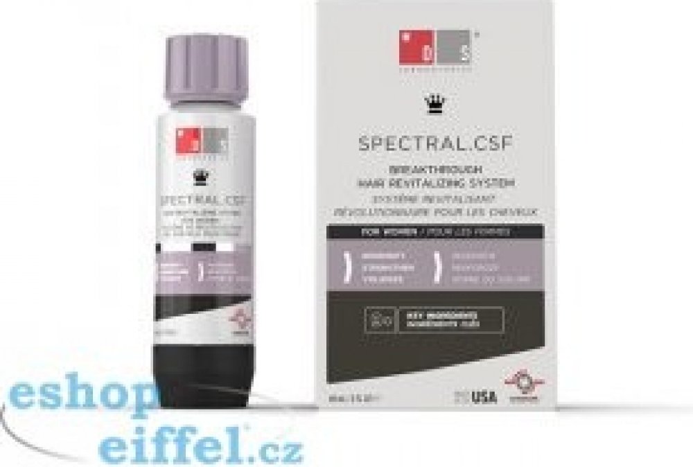 SPECTRAL CSF je navržen přímo pro ženy, které trápí jemné, řídnoucí a lámavé vlasy. Pomáhá navrátit vlasy po porodu, hormonálních změnách nebo po menopause. Omlazující receptura přípravku s Nanoxidilem zabraňuje vypadávání vlasů, pomáhá růstu nových a posiluje stávající vlasy, dodává jim živější a mladší vzhled. Účinné látky současně stimulují růst nových vlasů a podporují tak objem účesu.