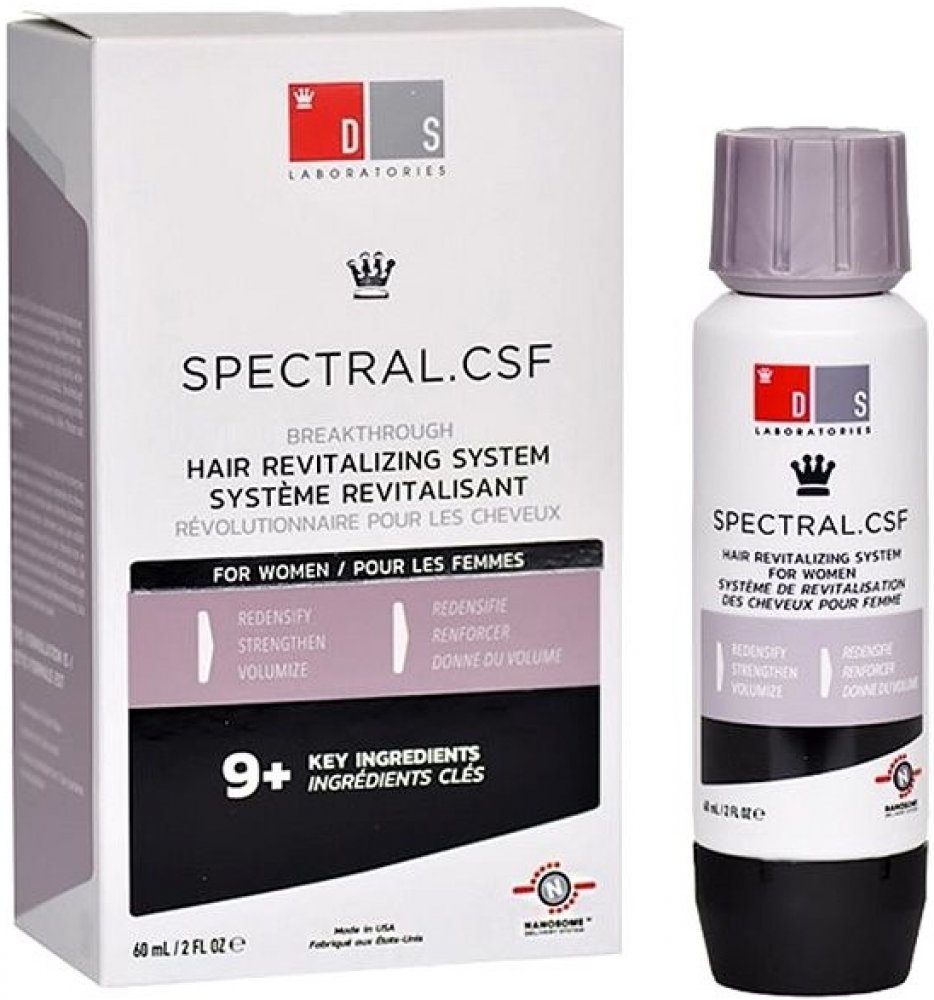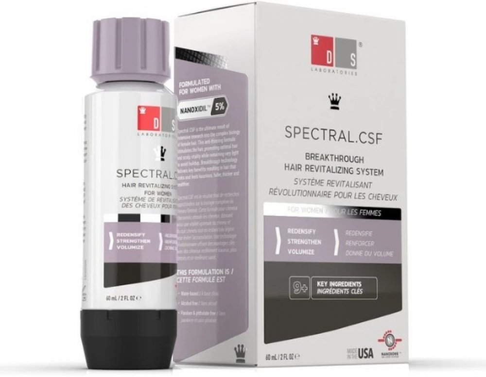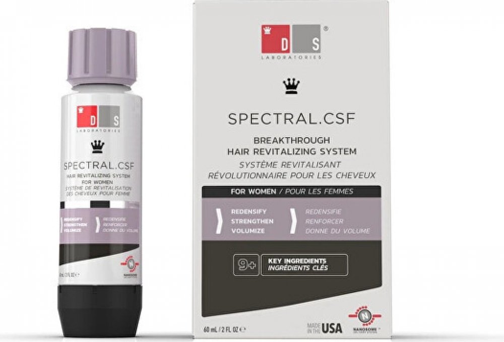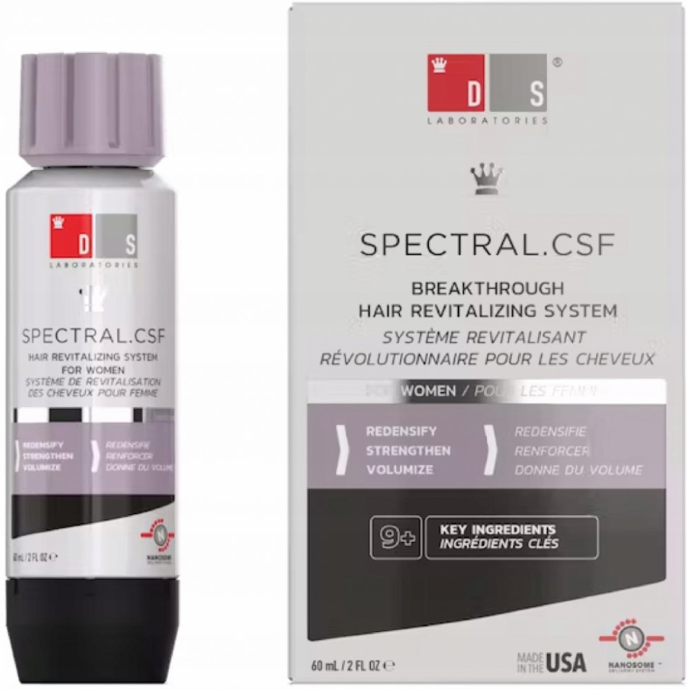SPECTRAL CSF je navržen přímo pro ženy, které trápí jemné, řídnoucí a lámavé vlasy. Pomáhá navrátit vlasy po porodu, hormonálních změnách nebo po menopause. Omlazující receptura přípravku s Nanoxidilem zabraňuje vypadávání vlasů, pomáhá růstu nových a posiluje stávající vlasy, dodává jim živější a mladší vzhled. Účinné látky současně stimulují růst nových vlasů a podporují tak objem účesu.