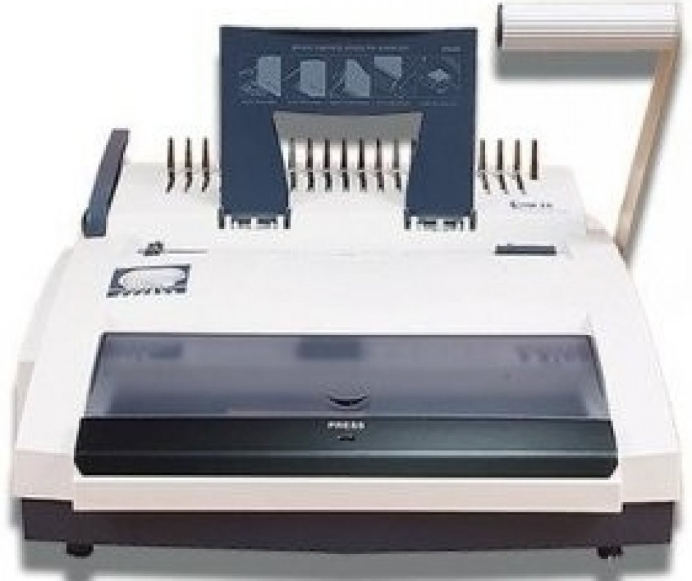 Elektrický kombinovaný stroj pro vázání plastovým i drátěnými hřbety (3:1) s oddnými vstupy pro děrování pro plastovou a drátěnou vazbu.