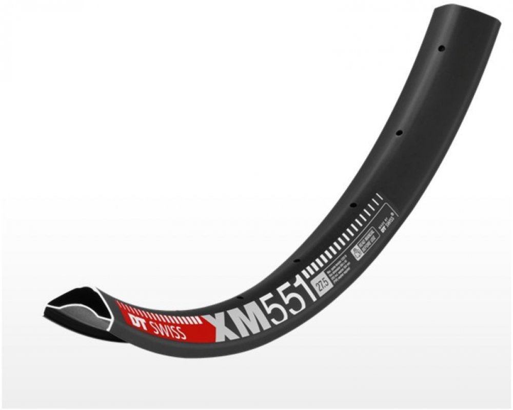 "Nové super široké pneumatiky 27,5+ poskytují výbornou trakci, kontrolu a bezpečnost i na velmi obtížných tratích. Ráfek DT Swiss XM 551 je jejich ideální protějškem. Je vyroben z extra tuhé a lehké hliníkové slitiny, která umožňuje tak širokou a robustní konstrukci. Přizpůsobení pro bezdušové systémy je samozřejmostí.