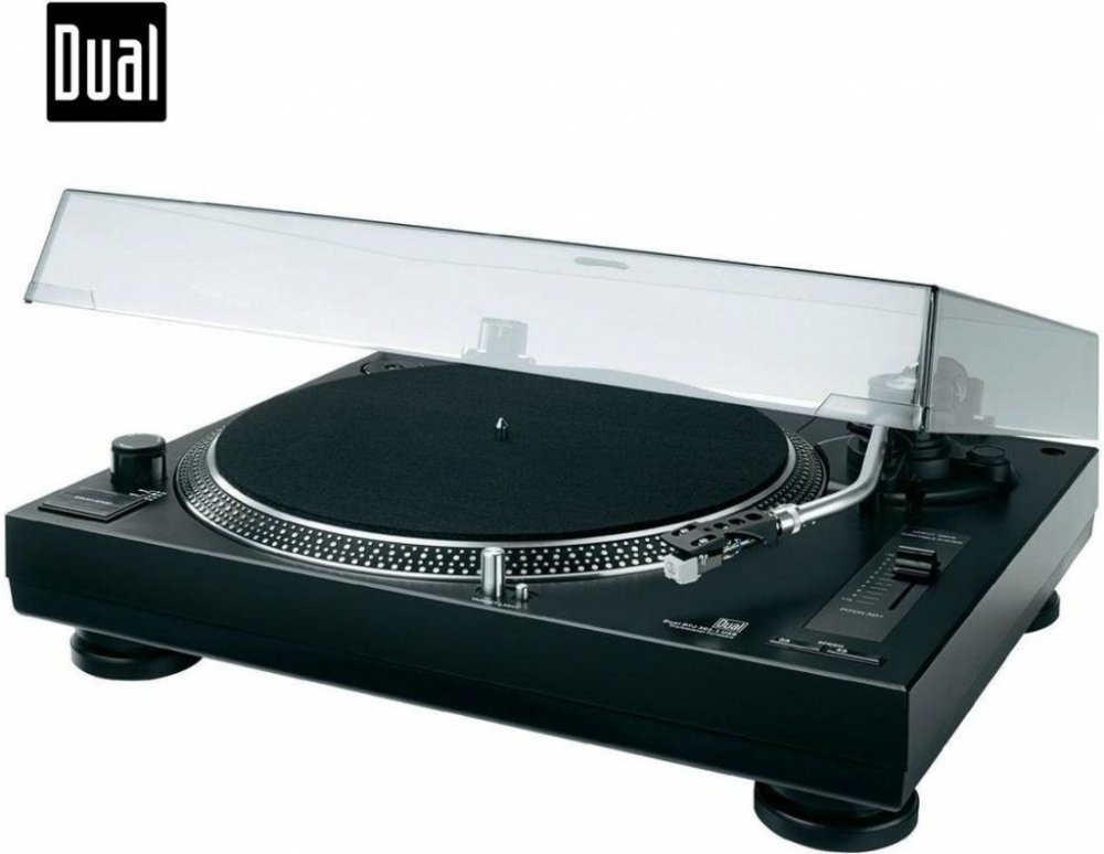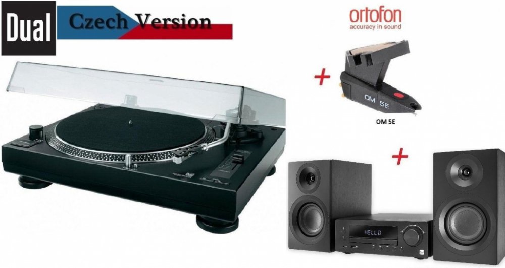 DUAL s přímým náhonem DJ s hliníkovým talířem bez reproduktorů přepínatelný PHONO / LINE s kvalitním HiFi zvukem klasické stolní 450 mm 139 mm 350.0 mm 5.5 kg 230 V 33/45 rpm Ortofon OM 5E + DAB-MS170 S-tvar (S-shaped)