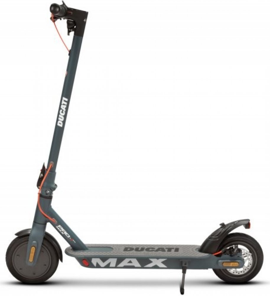 elektrická koloběžka • výkon motoru 350 W • max. dojezd až 40 km • max. rychlost až 25 km/h • 5 let záruka na motor • 8,5palcová kola s duší • doba nabíjení 5 hod. • nosnost 100 kg • aplikace Ducati Urban e-Mobility • LED displej • LED osvětlení • tempomat • 4 jízdní režimy • duální brzdy • blinkry • Bluetooth • odolnost IPX4 • hmotnost 13,3 kg