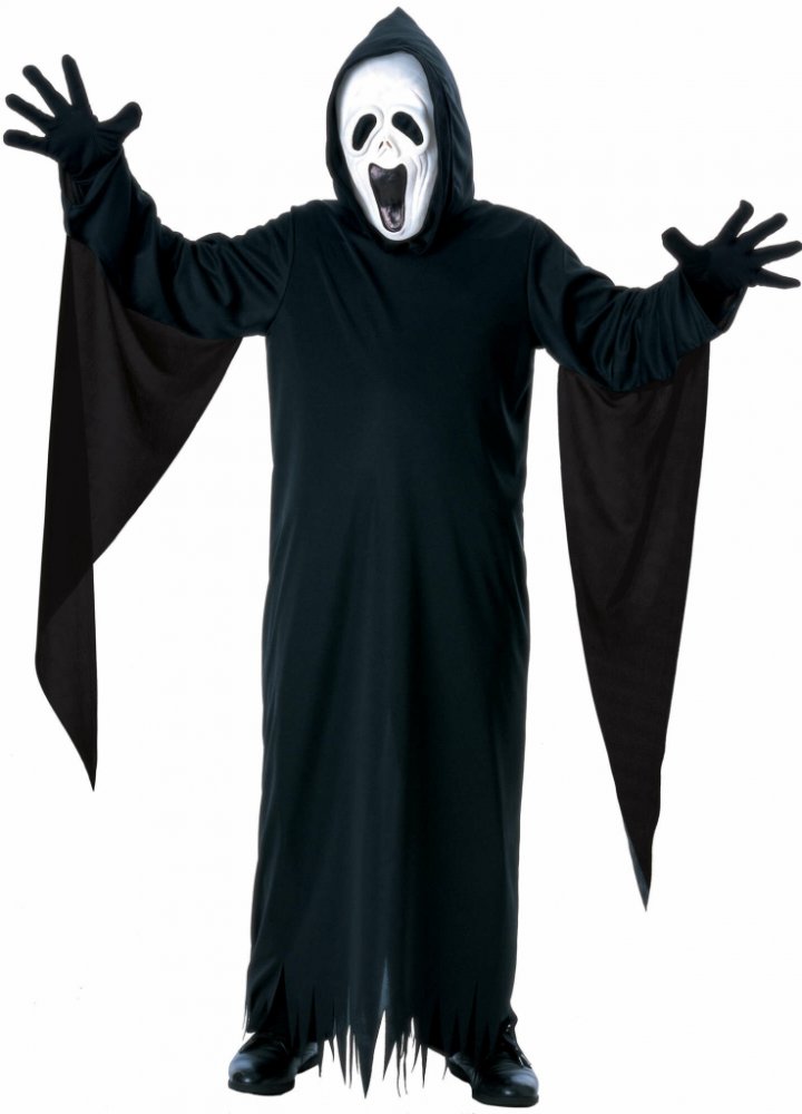 Součástí kostýmu je maska, róba s kapucí a rukavice.