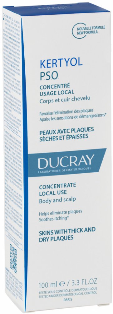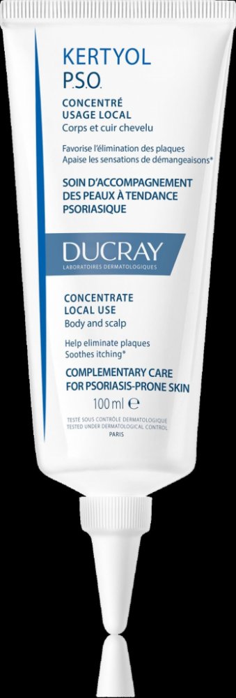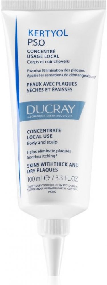 Ducray Kertyol PSO Koncentrovaná péče pro lokální použití byla specificky vyvinuta tak, aby účinně působila na suché silné plaky na těle (lokty, kolena, holeně) a na pokožce hlavy. Podporuje odstraňování suchých plaků, zmírňuje zarudnutí a zklidňuje pocity svědění spojené se suchostí kůže.