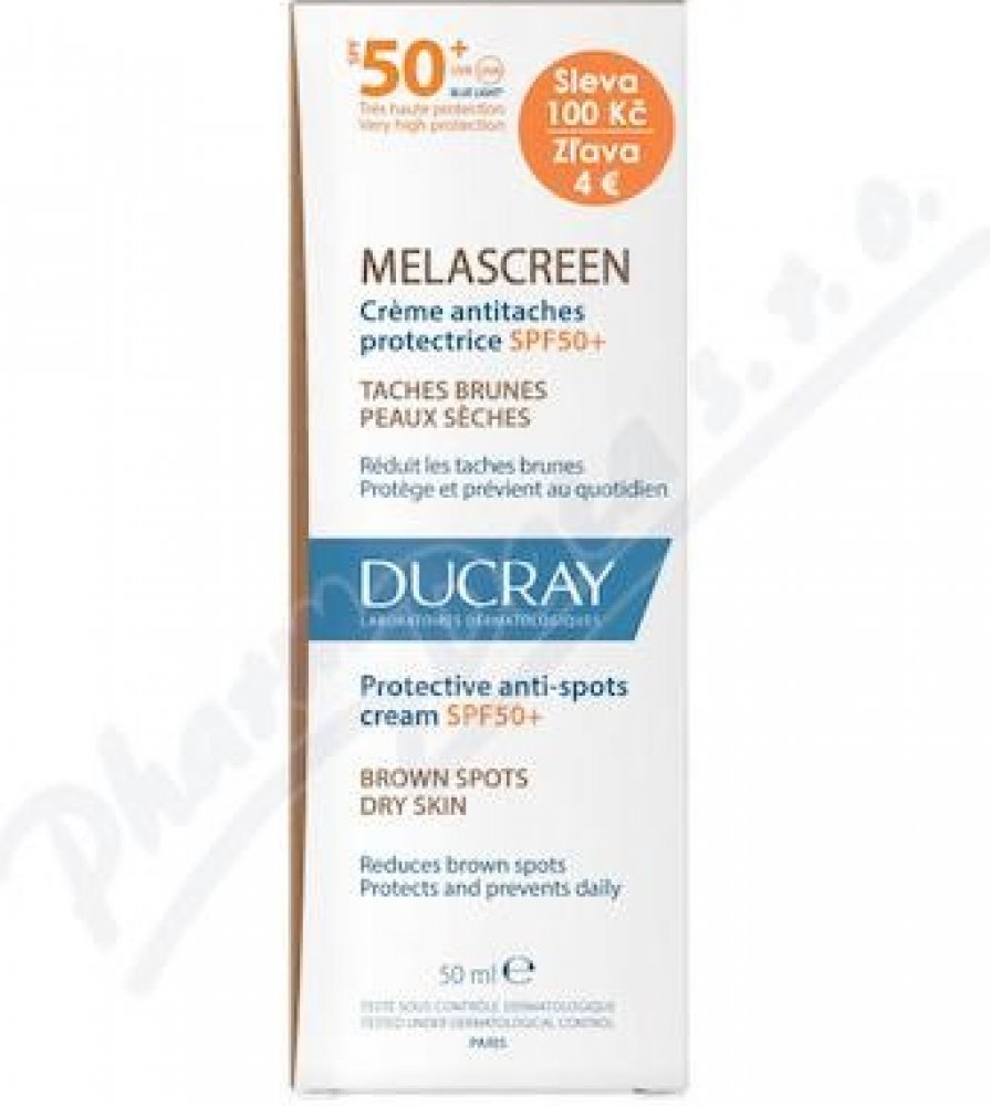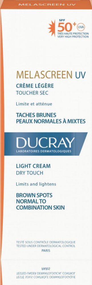 Ochrana před sluncem vyvolanými hyperpimetacemi, lokalizovanými pigmentovými a stařeckými skvrnami. Vlastnosti: melascreen uV SPF 50+ výživný krém brání vzniku a zesvětluje pigmentové skvrny: Jeho širokospektrý fotoprotekční systém chrání před UVA a UVB záření. RonaCare®AP pomáhá omezovat pigmentové skvrny a chrání před fotostárnutím. Jeho jemná textura hydratuje a zmatňuje.