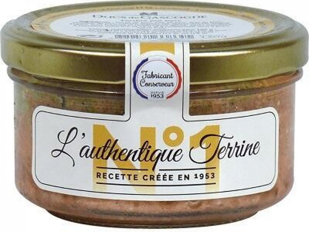 Ducs de Gascogne vytváří recepty na teriny již od roku 1953. Všechny teriny Ducs de Gascogne se vyrábějí v Gimontu v srdci Gers a jsou připravovány bez barviv nebo konzervačních látek.Složení: Vepřová krkovice, vepřová játra, vepřový tuk, vepřová kůže, mrkev, cibule, sůl, koření.Výživové údaje na 100g:energetická hodnota:1349 kJ/326kcal, tuky: 30g,z toho nasycené mastné kyseliny: 11g,sacharidy: 1,4g, z toho cukry: 0,6g,bílkoviny:14 g, sůl: 1,6g.Doporučení: servírujte chlazené.Hmotnost: 130gVyrobeno ve Francii.